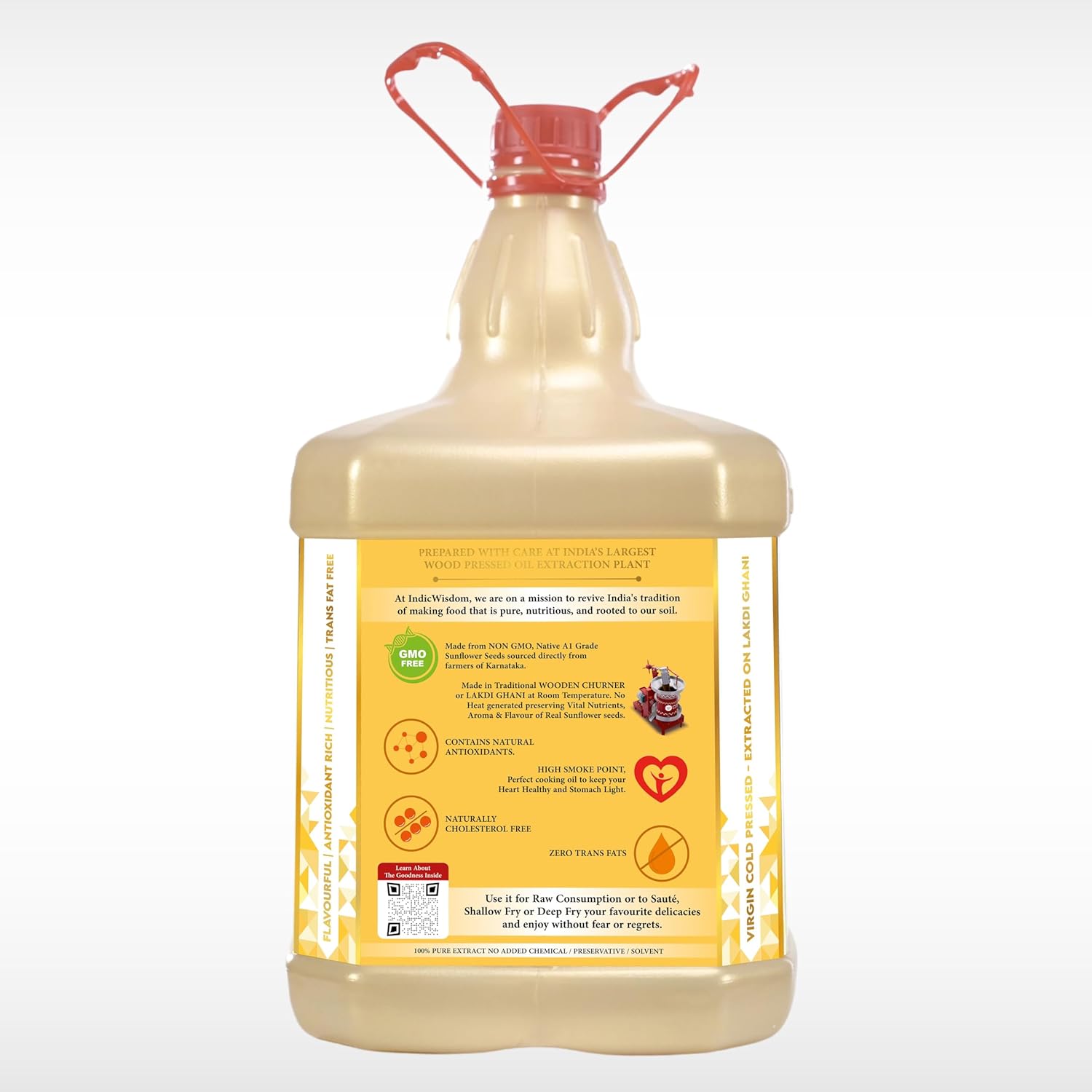 IndicWisdom Wood Pressed Sunflower Oil 5 liter (Cold Pressed Sunflower Oil – Extracted on Wooden Churner)