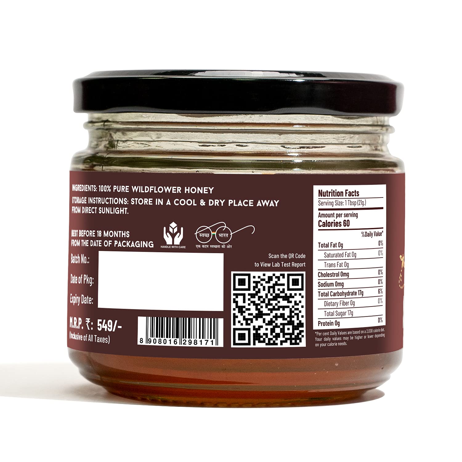 Kesariya Farm Wildflower Honey | Raw 100% Pure & Natural | Produced By Wild Forest Bees | Unprocessed, Unpasteurized | NMR Tested | Glass Jar (350 Gram)