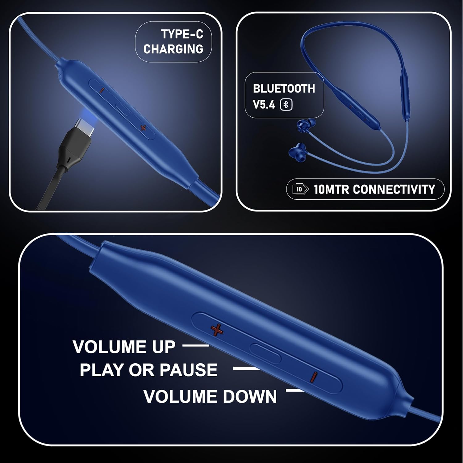 52Hrs Playtime – Kratos Neckband offers a massive 52 hours of nonstop playback with Type-C fast charging, making it the ideal companion for travel, workouts, and daily use without worrying about frequent charging breaks
