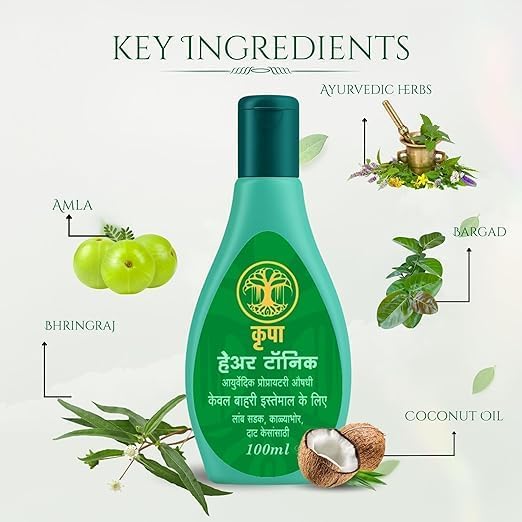Krupa Hair Tonic | Natural Hair Growth Solution | Strengthens Hair Roots, Nourishes Scalp For Men & Women | Herbal Formula (100ml)