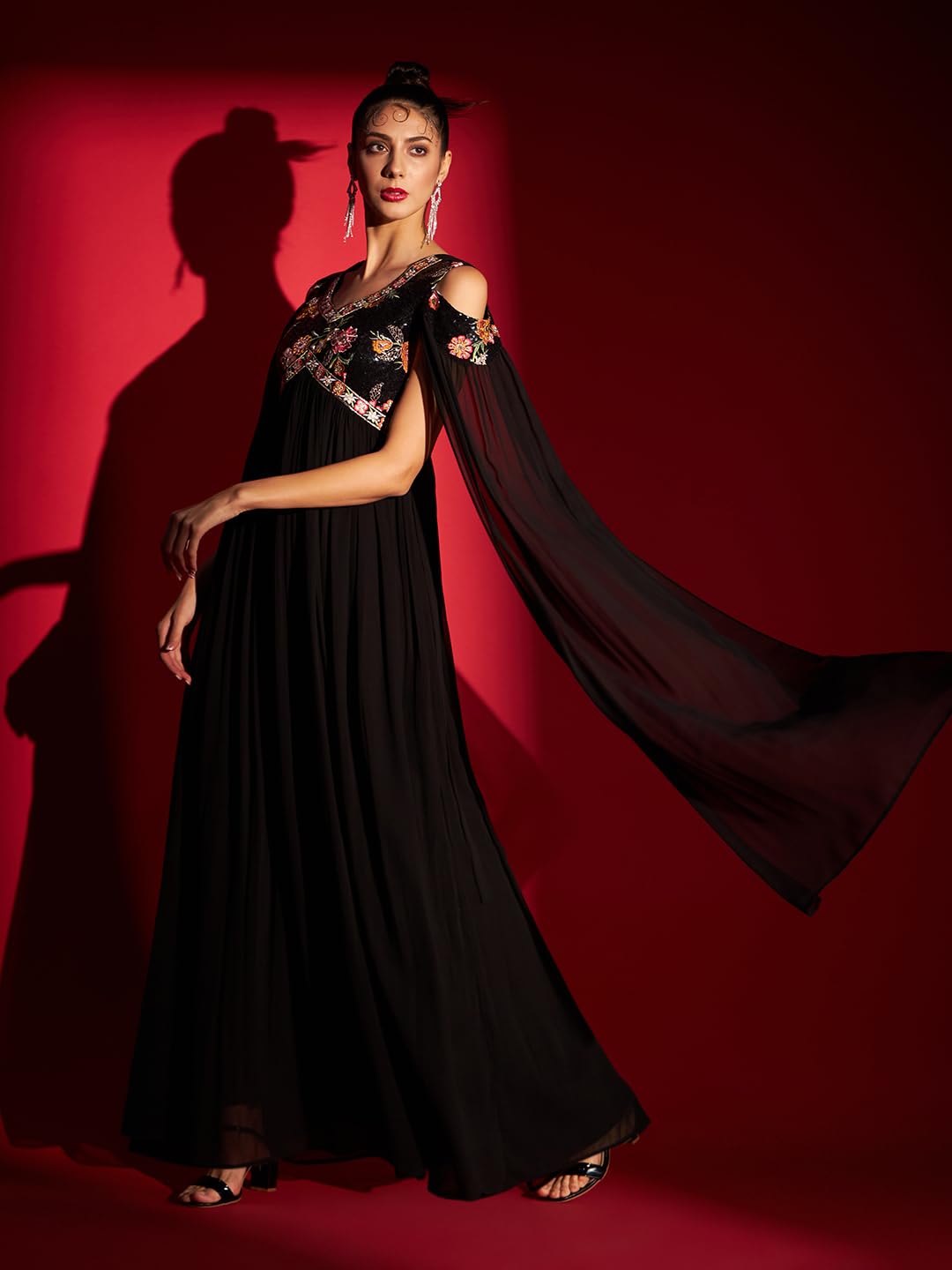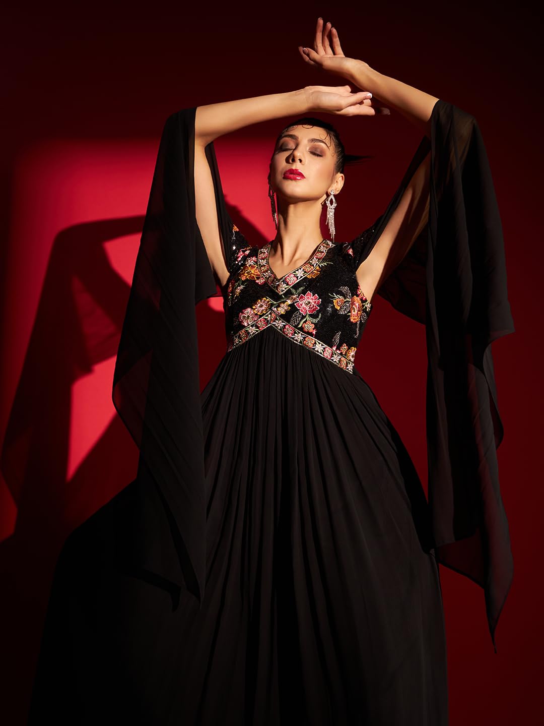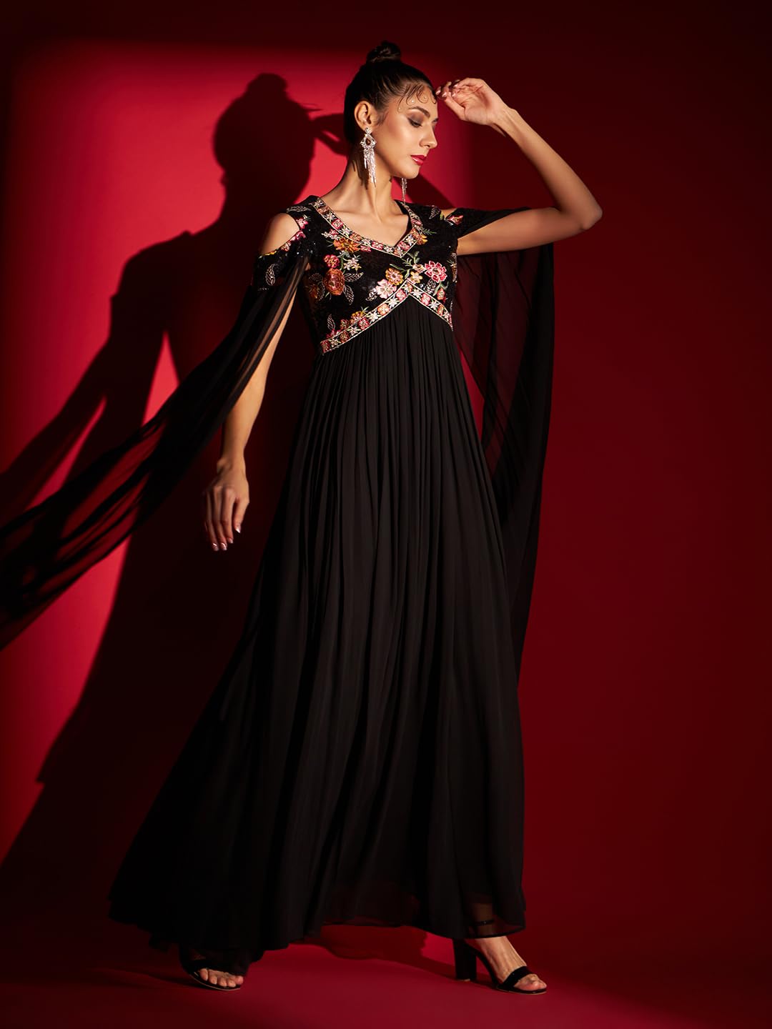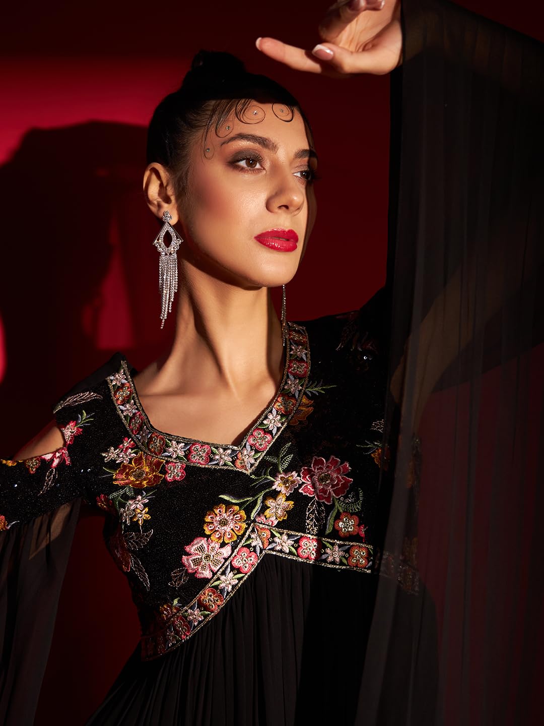 Madhuram Women’s Georgette Traditional Ethnic with Sequance Embroidery Work Long Gown(M-2443)
