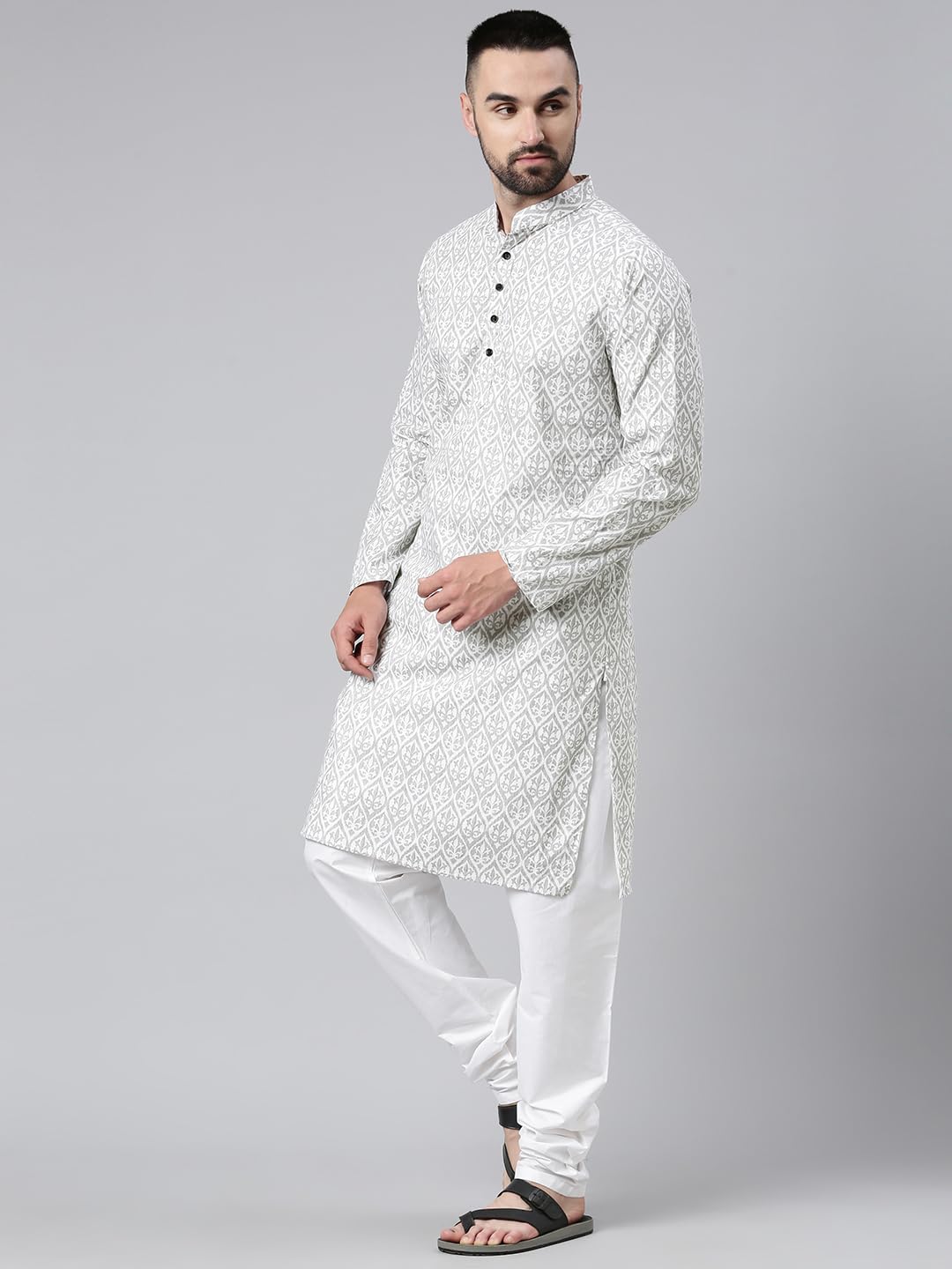 Majestic Man Men’s Cotton Regular Fit Casual Mandarin Collar Ethnic Motifs Printed Long Regular Kurta