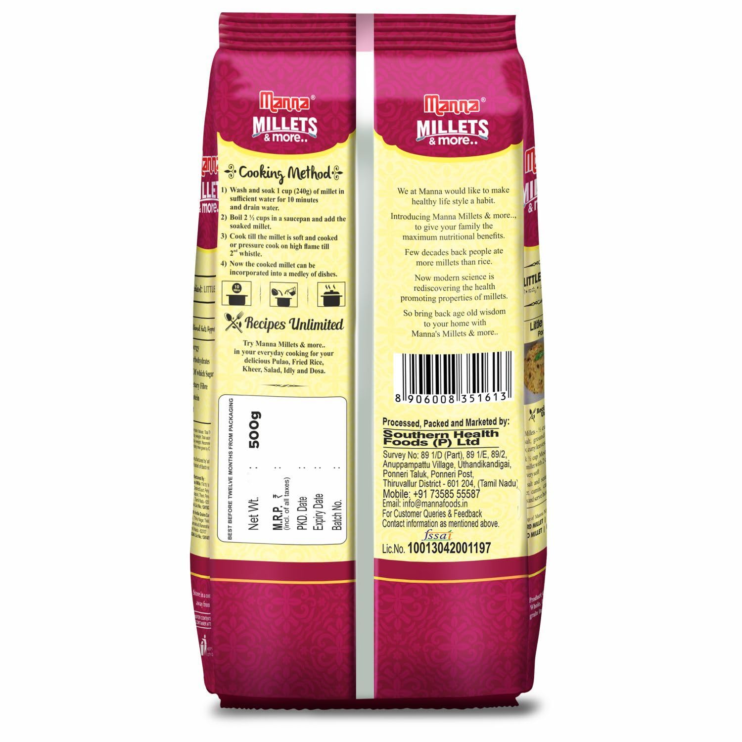 Manna Little Millet 1Kg Unpolished, Certified Low GI, Glycemix Index value 27, Kutki/Samai/Same/Samulu. 20% more protein & 100% more Fibre than white rice. Natural Grains