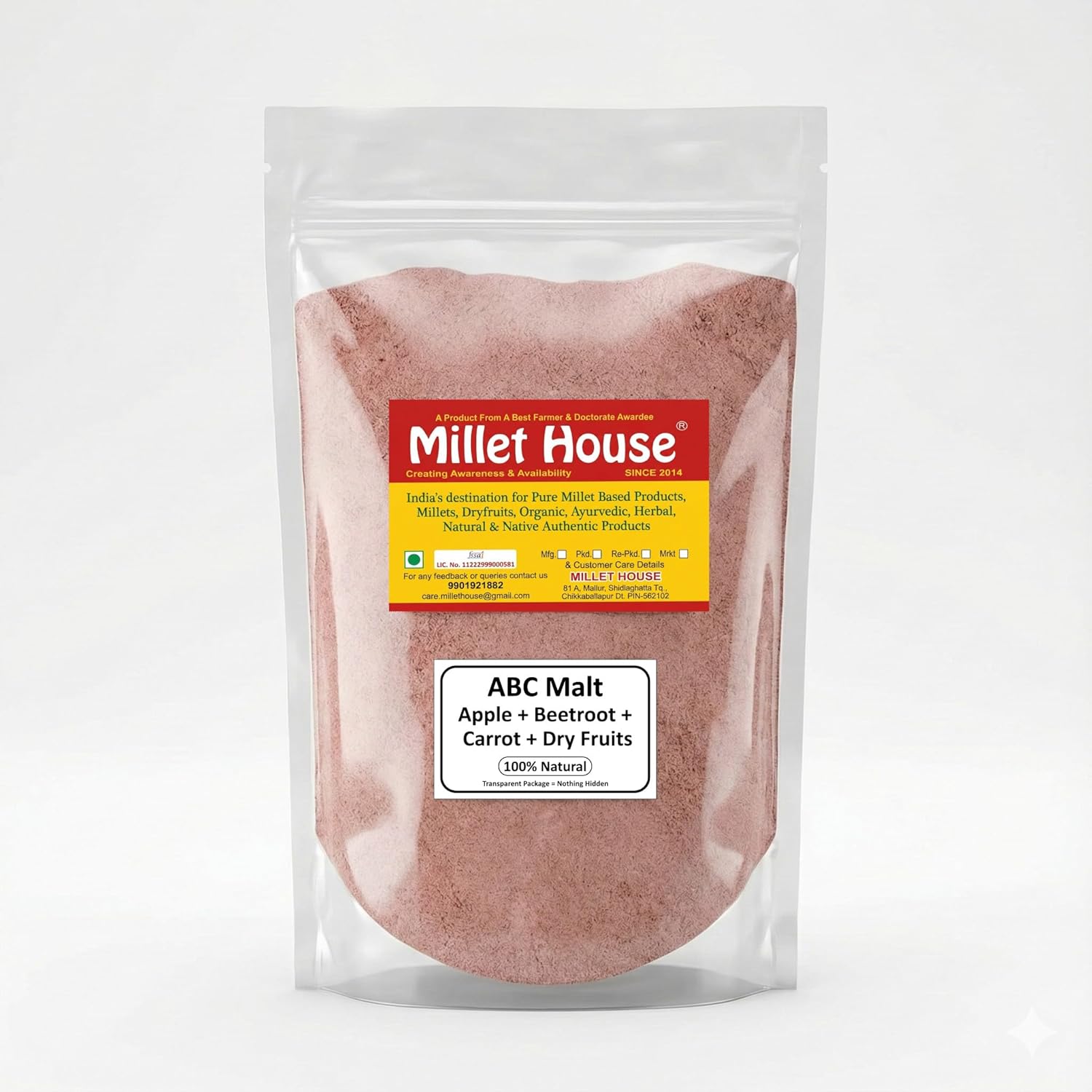 ✅ Package Contents: Pack Of 1 – 200 Grams Millet House ABC ( APPLE BEETROOT CARROT + DRY FRUITS) malt Powder