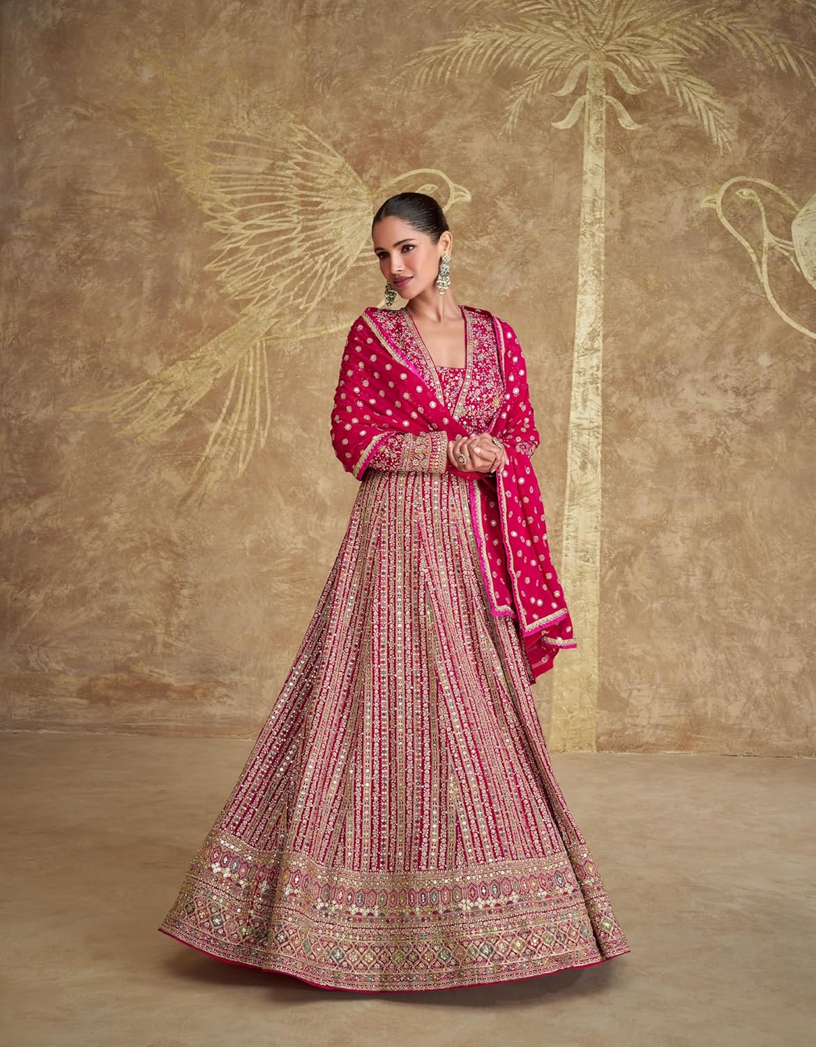 Top Details : Color : Pink, Top Fabric : Chinon, Top Stitching : Stitched, Top Work : Embroidered, Top Length : 57 Inches , Bust Size : 40 Top Type : Anarkali Gown, Product Type : Gown Dupatta Details : Dupatta Fabric : Chinon, Dupatta Work : Embroidered, Dupatta Fabric Length : 2.15 Mtrs