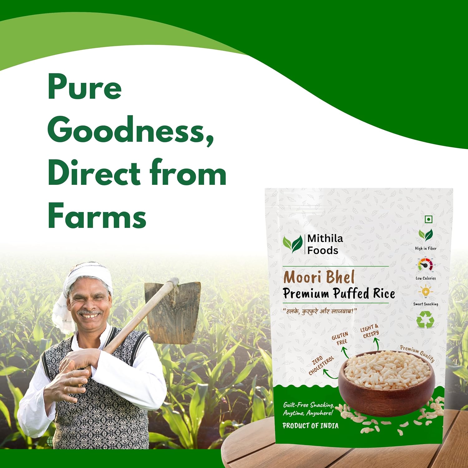 Mithila Foods brings you the authentic flavors of Bihar—from moori to chana and regional flours. Our puffed rice is part of a thoughtfully curated range made from high-protein, gluten-free, and naturally nutritious ingredients, perfect for your everyday diet.