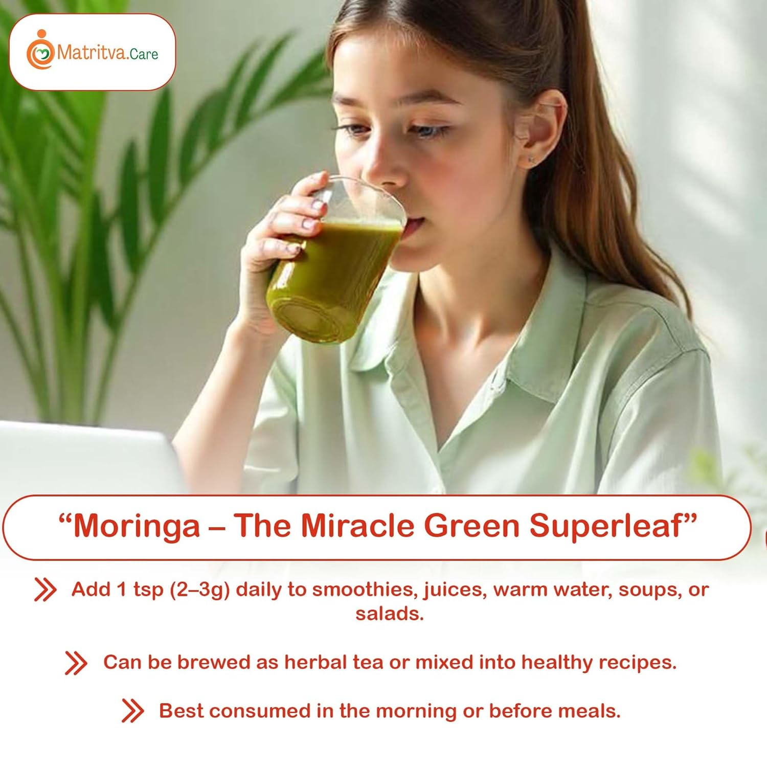 Multiple Ways to Incorporate into Daily Routine – Matritva Care Moringa Powder can be mixed with warm water, juices, herbal smoothies, or soups. It is also used in homemade herbal skincare preparations or as part of herbal formulations.