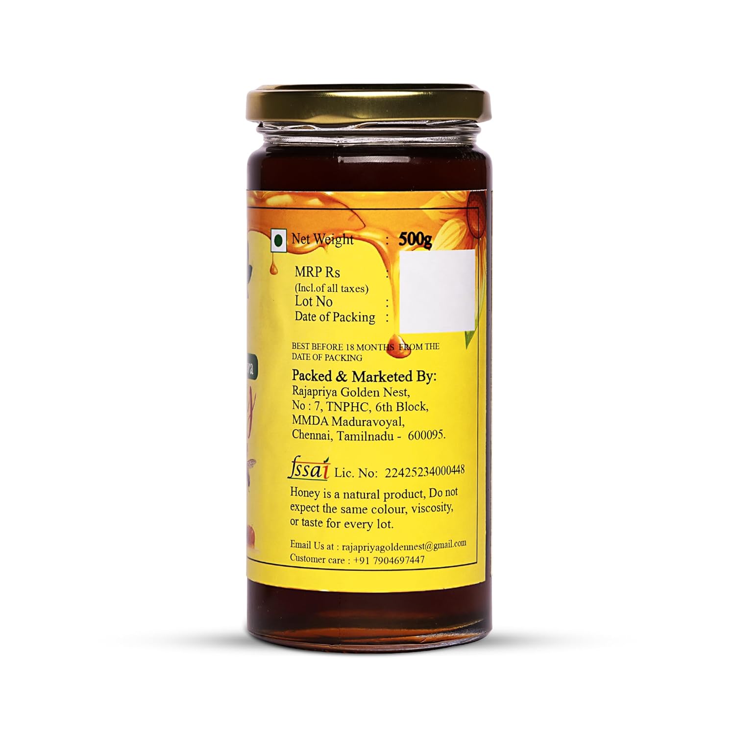 🫙 Bottled in Premium Glass Jars – Hygienically packed under stringent conditions to preserve its natural aroma, rich golden colour, and luscious taste without artificial preservatives, sugar, or chemicals.
