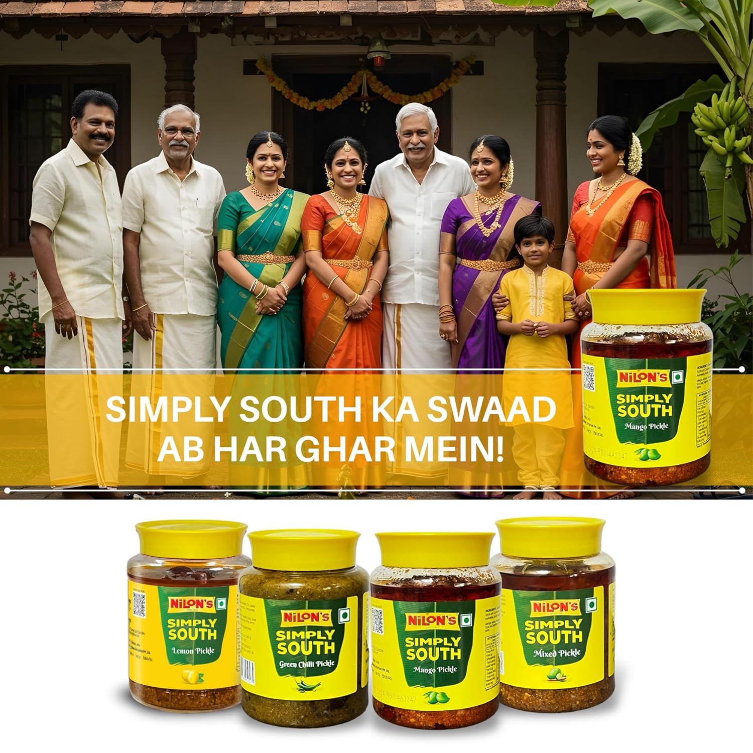 Nilon’s Simply South Mixed Pickle (500g) Homemade Aachar | Spicy & Tangy Pickle in Authentic South Indian Style with Raw Mango, Lemon, Rice Bran Oil & Spices with No Added Artificial Colour