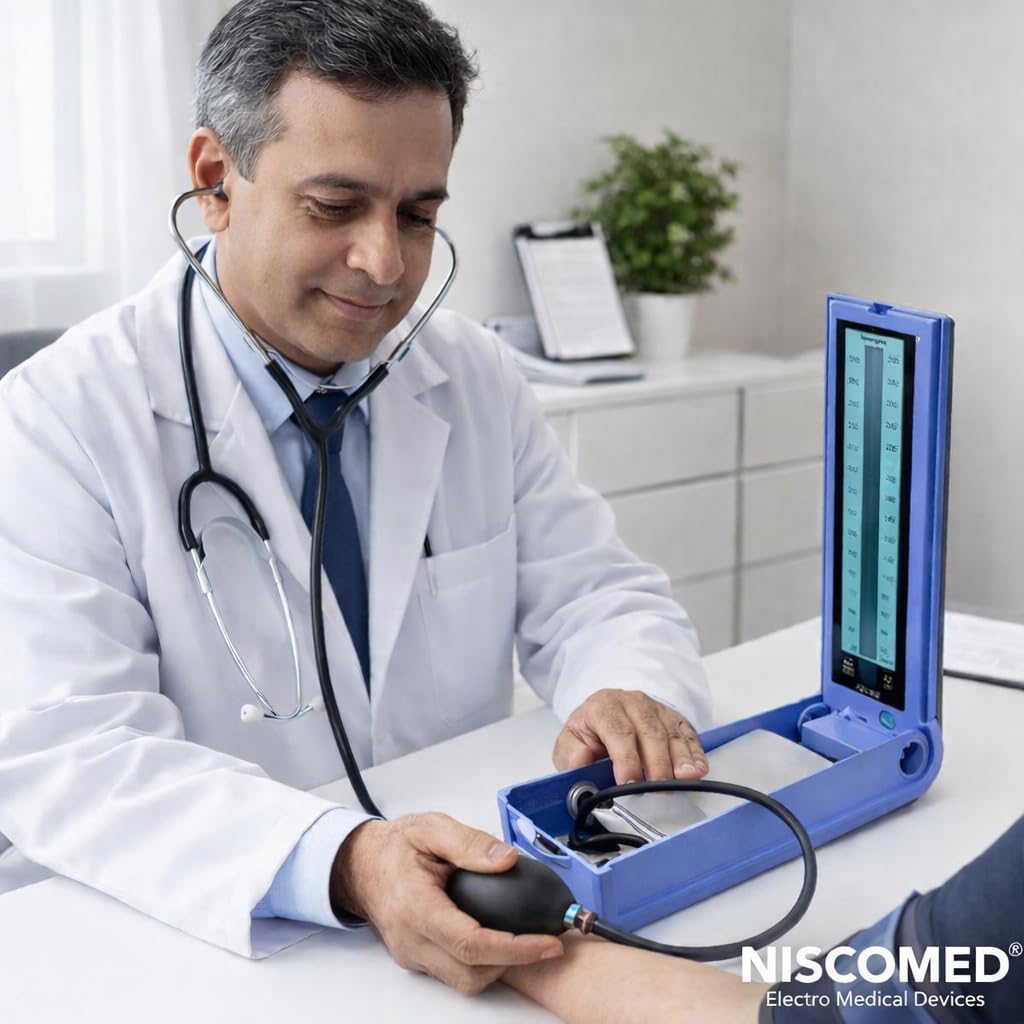 NISCOMED PW-216 Digital Mercury BP Apparatus (Mercury-Free) for Doctor & Clinic Use | Manual Blood Pressure Monitor with Vertical LCD Scale | Accurate & Durable