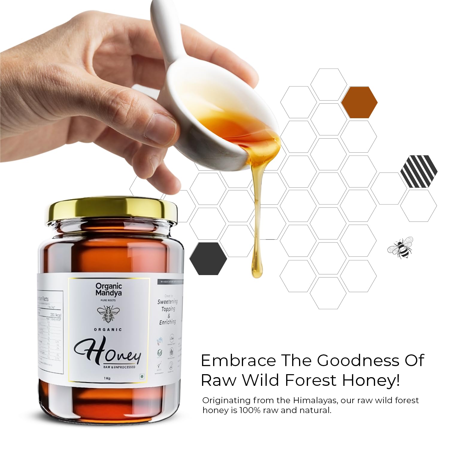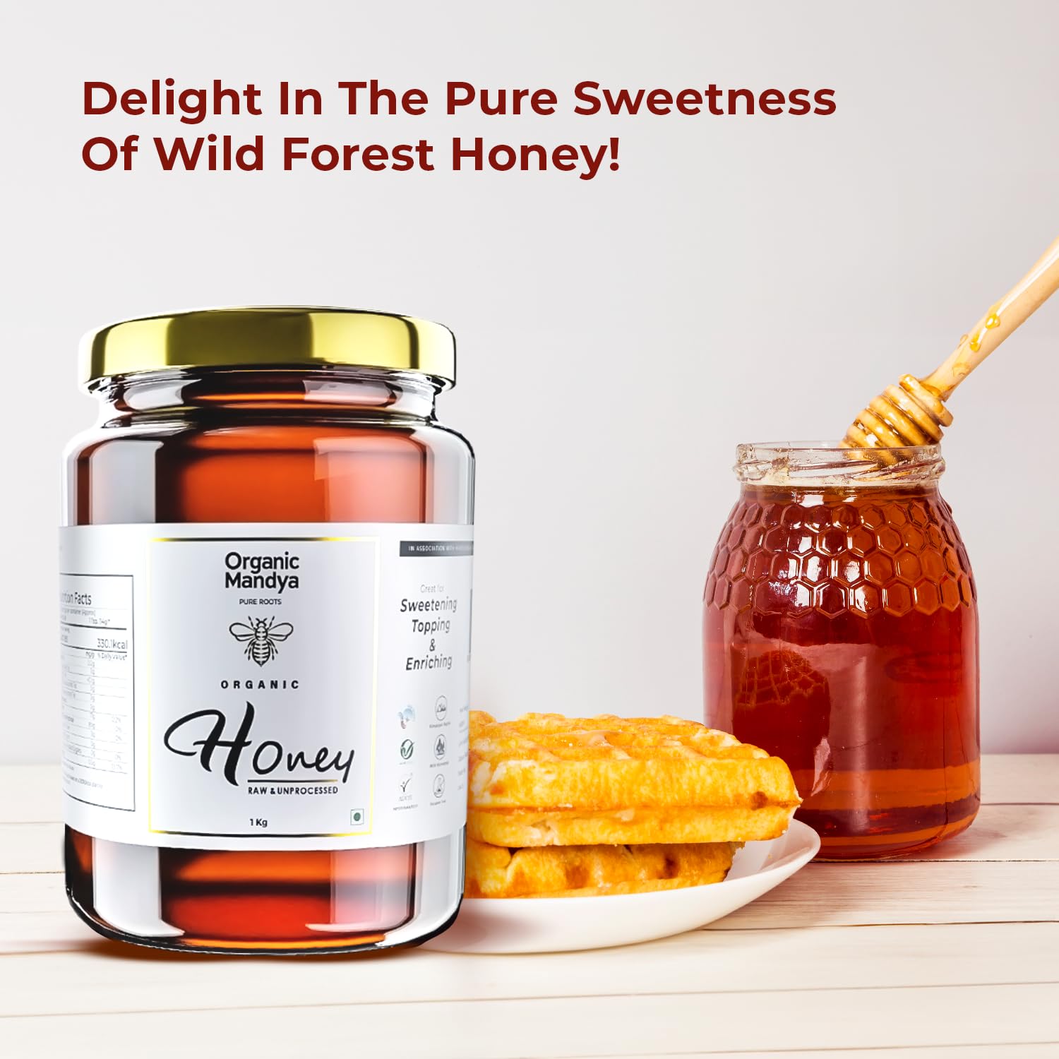 Organic Mandya Raw Wild Forest Honey 1000 GM || 100% Pure & Natural NPOP Organic Certified || Raw, Unprocessed