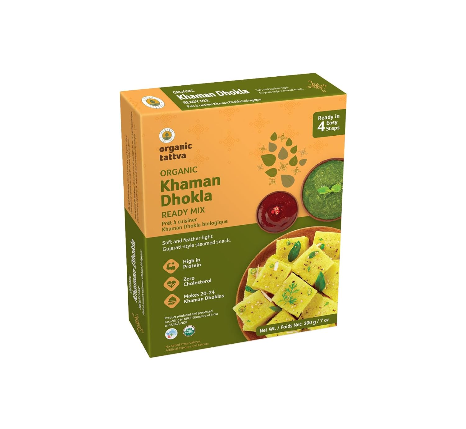 Organic Tattva, Organic Khaman Dhokla Instant Ready Mix 200 Gram | High in Protein, Zero Cholesterol | No Artificial Colours, Flavours and Preservatives | Ready in 3 Easy Steps