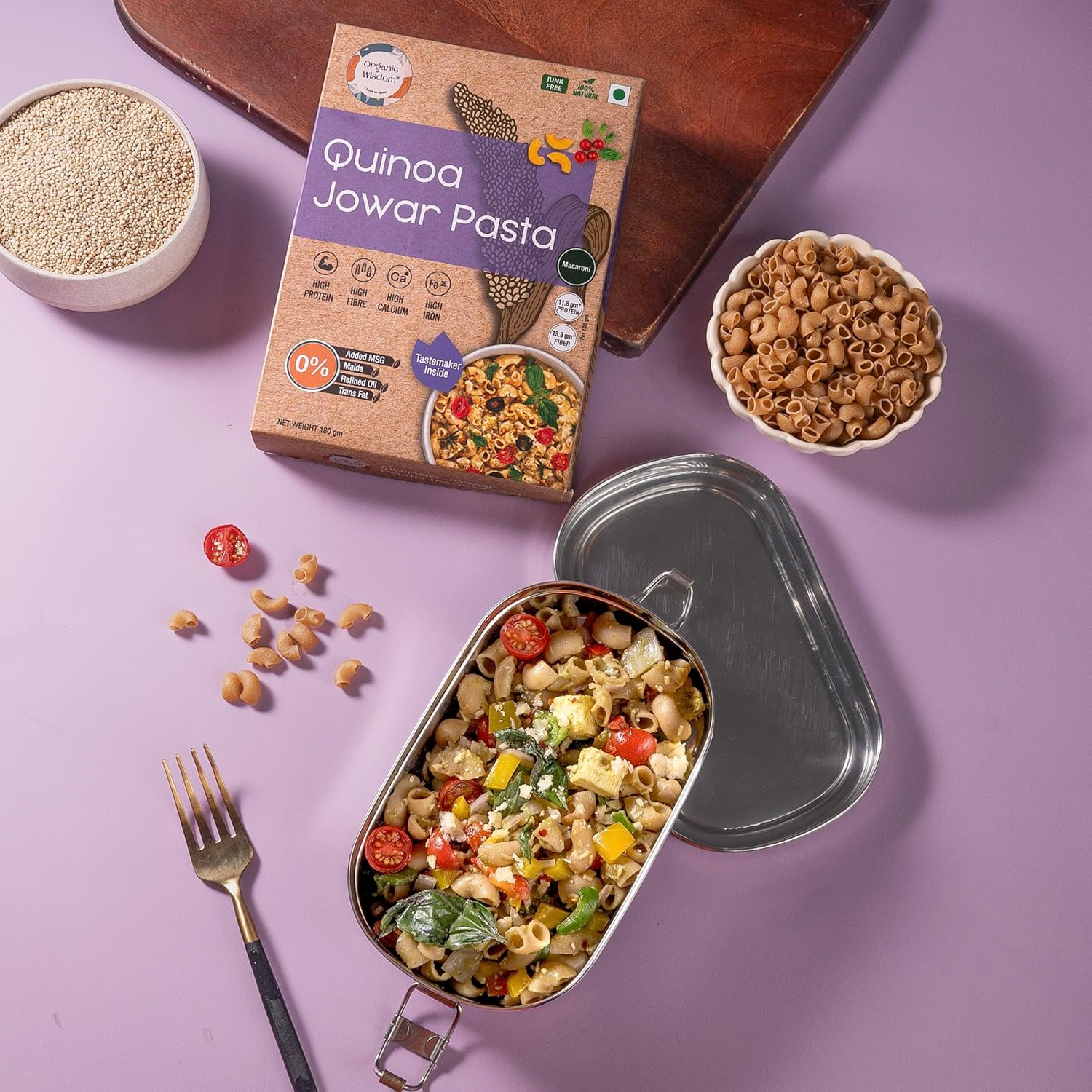 Organic Wisdom-Back to Roots Quinoa Jowar Macaroni Millet Pasta, 180g | No Maida, Not Fried, No MSG, No Preservatives | Sun Dried | Easy to make| Rich in Protein and Fiber