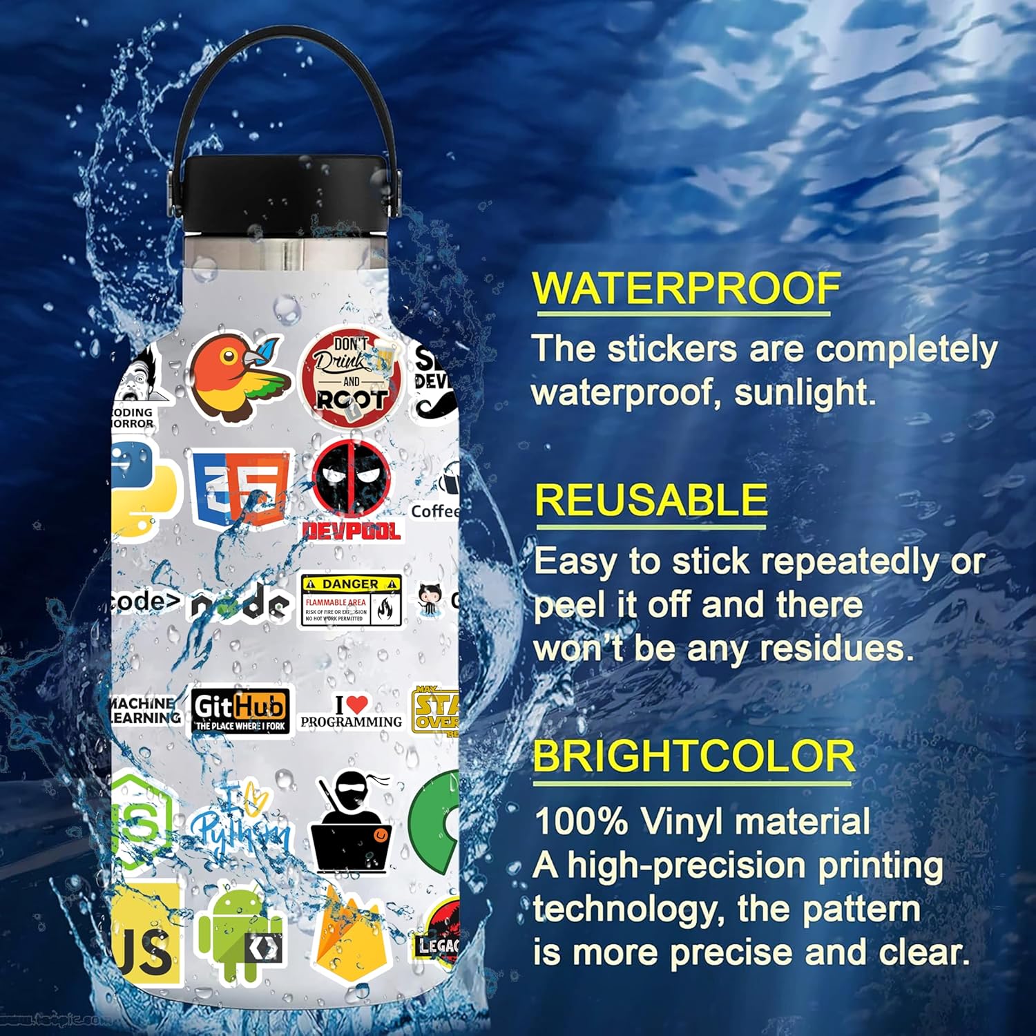 ✅ Waterproof & Weatherproof Vinyl Crafted from premium waterproof material, these stickers resist rain, sunlight, and daily wear — perfect for laptops, water bottles, bikes, suitcases, and more.