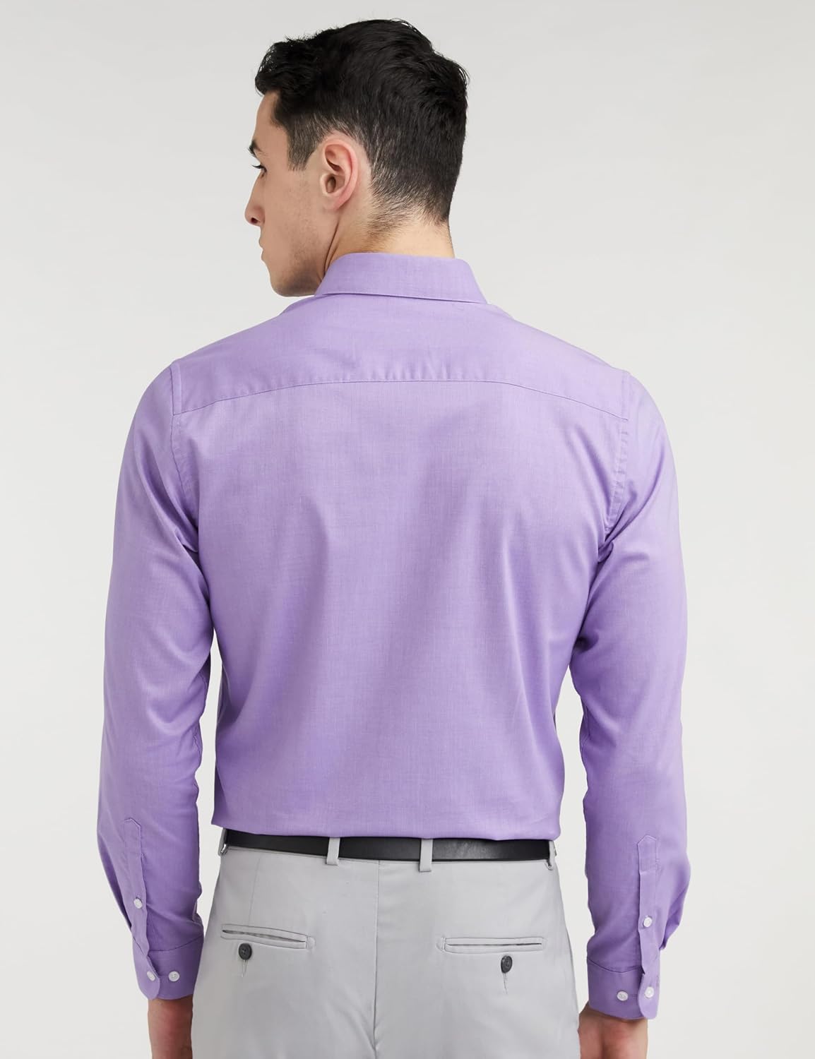 Made from Wonder Fabric CVC, combining softness and durability for lasting comfort. Cotton-rich composition ensures breathability and a refined feel. Crafted in classic pinpoint oxford weave for a smooth, polished texture. Solid color design for timeless, versatile formalwear. Features full sleeves with expertly tailored cuffs for a sharp, professional look