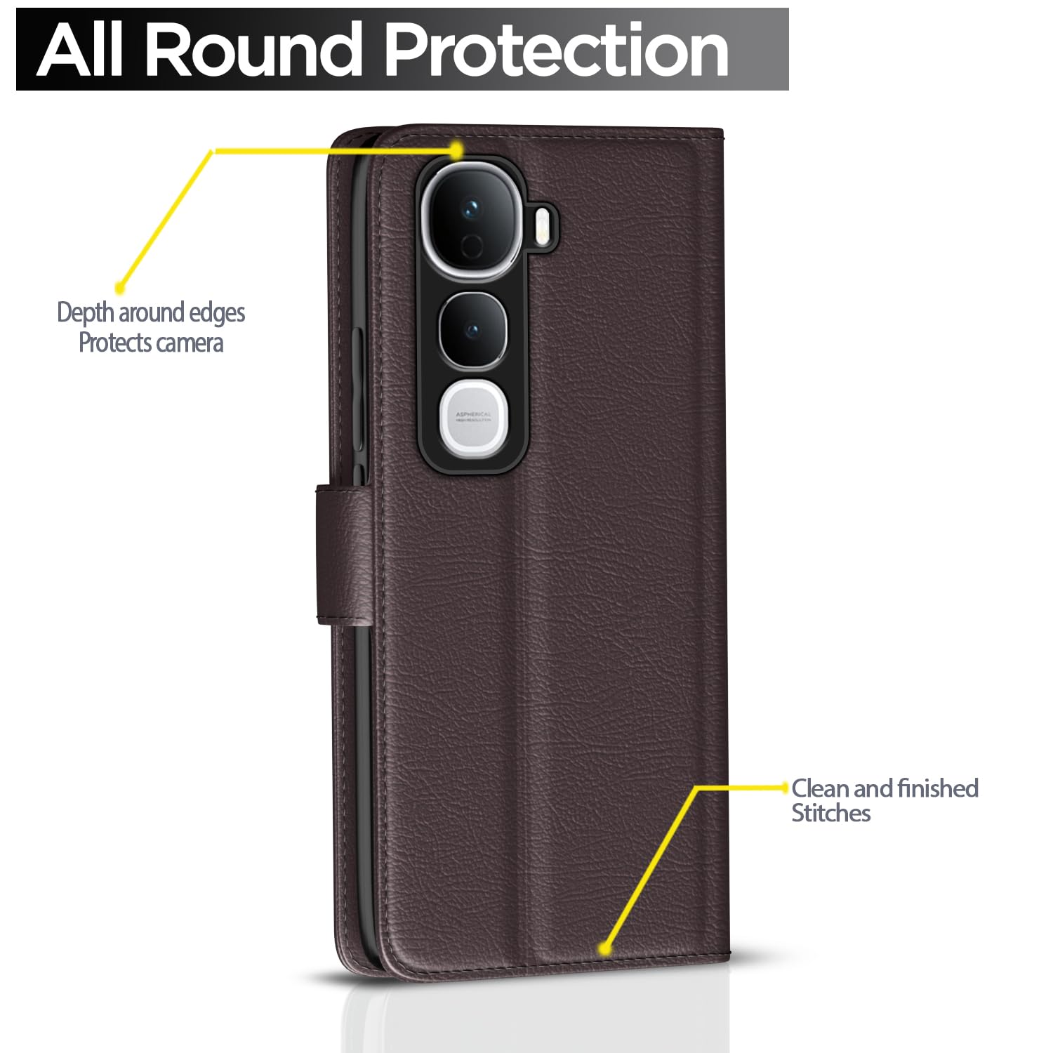 Pikkme Flip Cover for Vivo Y400 Pro 5G Leather Finish | Inside TPU with Card Pockets | Wallet Stand and Shock Proof | Complete Protection Flip Case(Coffee)