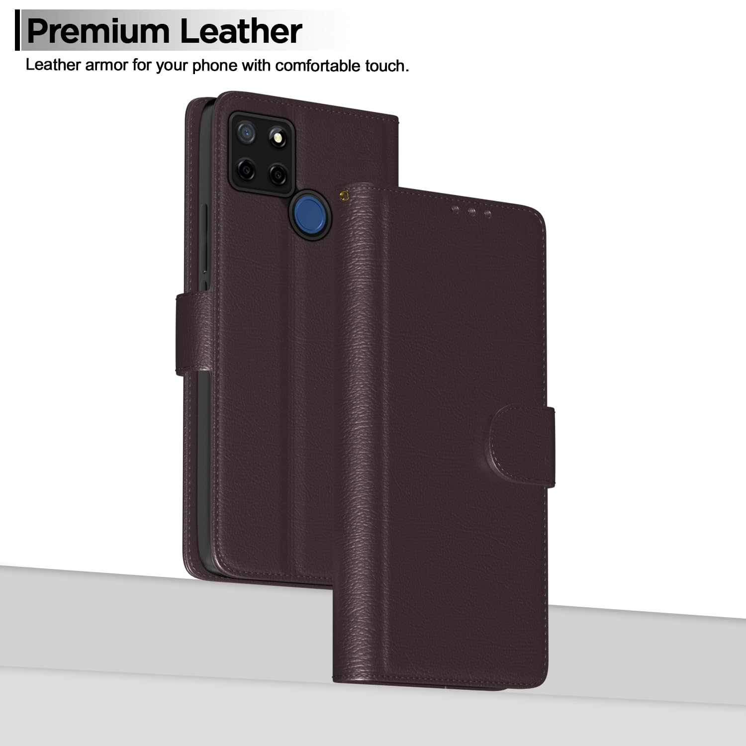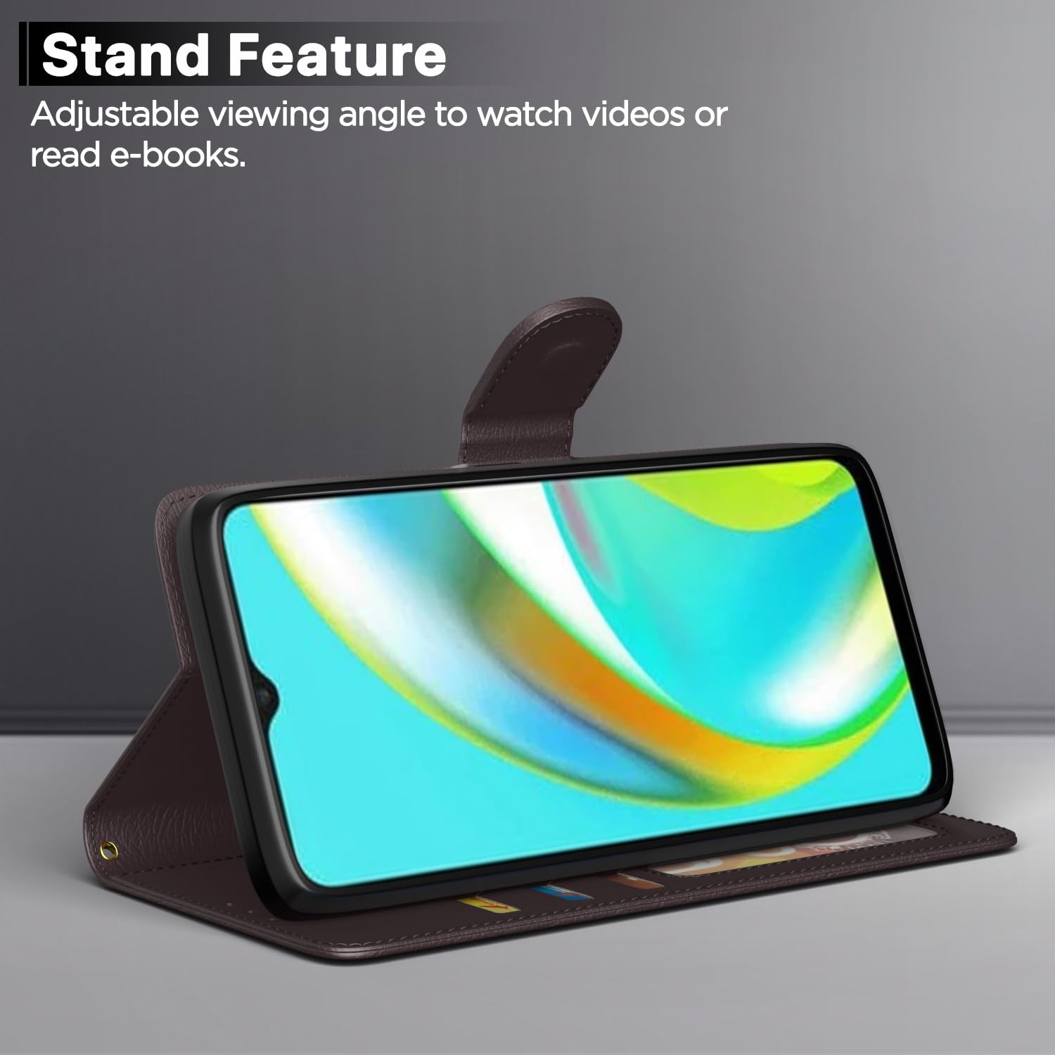 Pikkme Realme C12 / Realme Narzo 20 / Narzo 30A / Realme C25 Flip Case Leather Finish | Inside TPU | Wallet Stand and Shock Proof | Magnetic Closing | Complete Protection Flip Cover (Coffee)