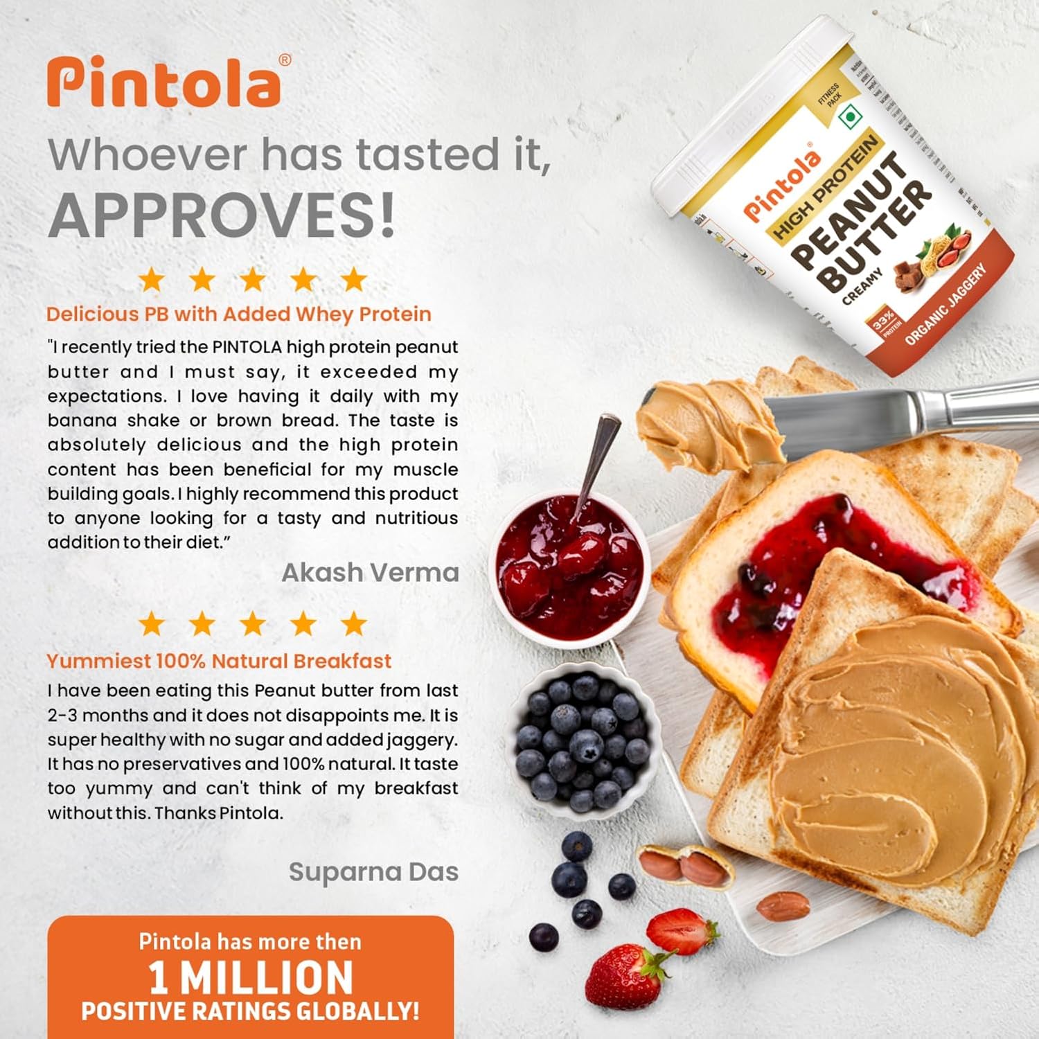 WHAT MAKES PINTOLA A POPULAR CHOICE FOR NUT BUTTER LOVERS? – For MORE THAN A DECADE we have been crafting peanut butter with the finest ingredients! Our relationships with the community of farmers and growers are long-standing and deeply trusted. Imported machinery, our in-house laboratory and continuous roasting technology ensure that every jar we produce is identical in taste and quality.