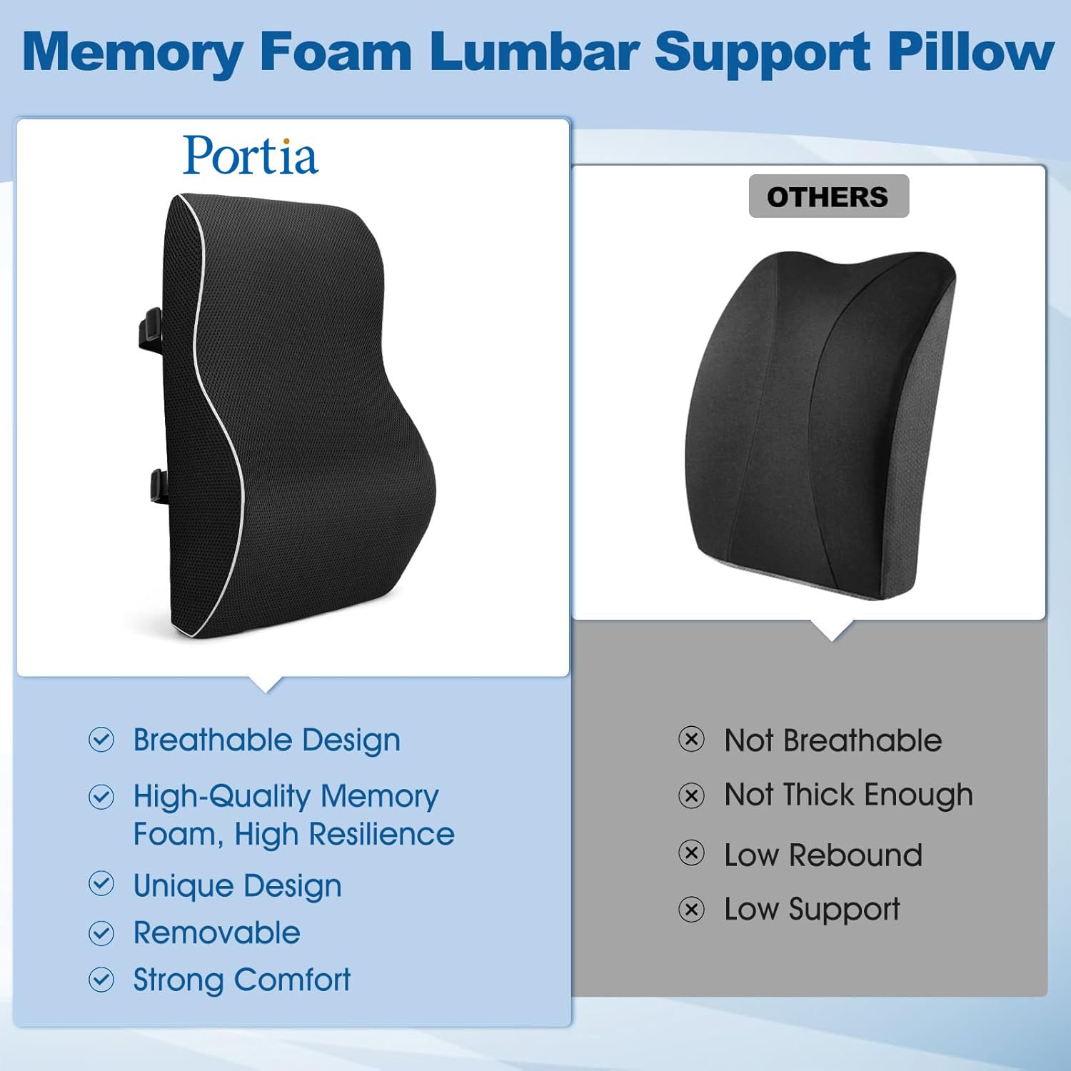 Portia Back Support for Office Chair | Gel Memory Foam Car Seat Back Support, Orthopedic Lumbar Back Rest for Back Pain Relief – Back Pillow for Sitting