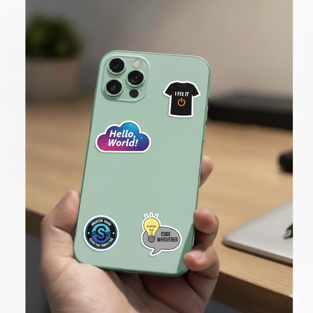 Bring your workspace to life and showcase your passion for coding, creativity, and technology with our Programmer Laptop Stickers Pack — a curated collection designed for developers, programmers, computer science students, and tech enthusiasts who live and breathe code. Whether you’re a beginner writing your first “Hello World!” program or a seasoned software architect managing cloud deployments, these stickers capture the essence of what it means to be part of the coding world.Your laptop isn’t just a device—it’s your daily companion, your workspace, and your identity as a developer. With this sticker pack, you can finally personalize it to reflect your journey in the world of tech. Each sticker carries a unique message inspired by programming languages, debugging humor, coding puns, and technology culture.From iconic phrases like “Hello World!” and “Commit” to witty symbols like “No Bugs,” “I Fix It,” and “Syntax Saver,” these designs add both inspiration and humor to your everyday grind. Every piece in this pack is thoughtfully designed to keep your setup looking clean, modern, and aesthetic while expressing your love for technology.Our stickers are made from high-quality, waterproof vinyl that ensures long-lasting performance and durability. Whether you stick them on your laptop, PC case, tablet, notebook, water bottle, or desk, these vinyl decals will stay vibrant and intact. They are non-residue and easy to peel off without leaving marks, making them perfect for anyone who loves to change their setup frequently.Laptop stickers for programmers, coding stickers, developer stickers, computer science gifts, coder aesthetic stickers, tech stickers, laptop decals, JavaScript stickers, HTML CSS stickers, software developer gifts, tech accessories, programming vinyl stickers, IT student gift, coding humor stickers, non-residue vinyl stickers, waterproof laptop stickers for coders.