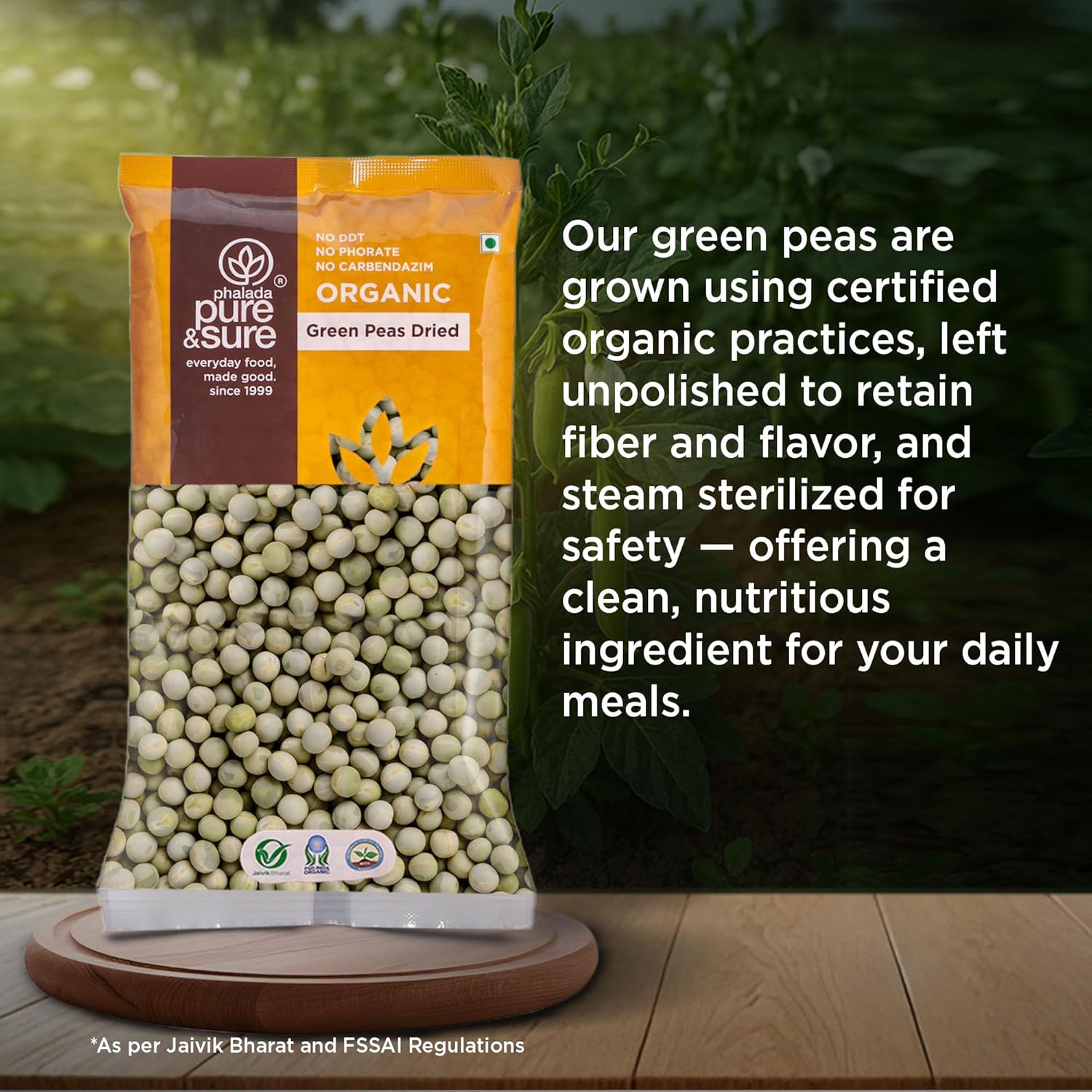 Pure & Sure Organic Green Peas (Matar) Dry 500G | 100% Natural Hara Matar, Vatana | Unpolished & Unadulterated | Healthy and Rich in Fiber & High Protein| Steam Sterilized