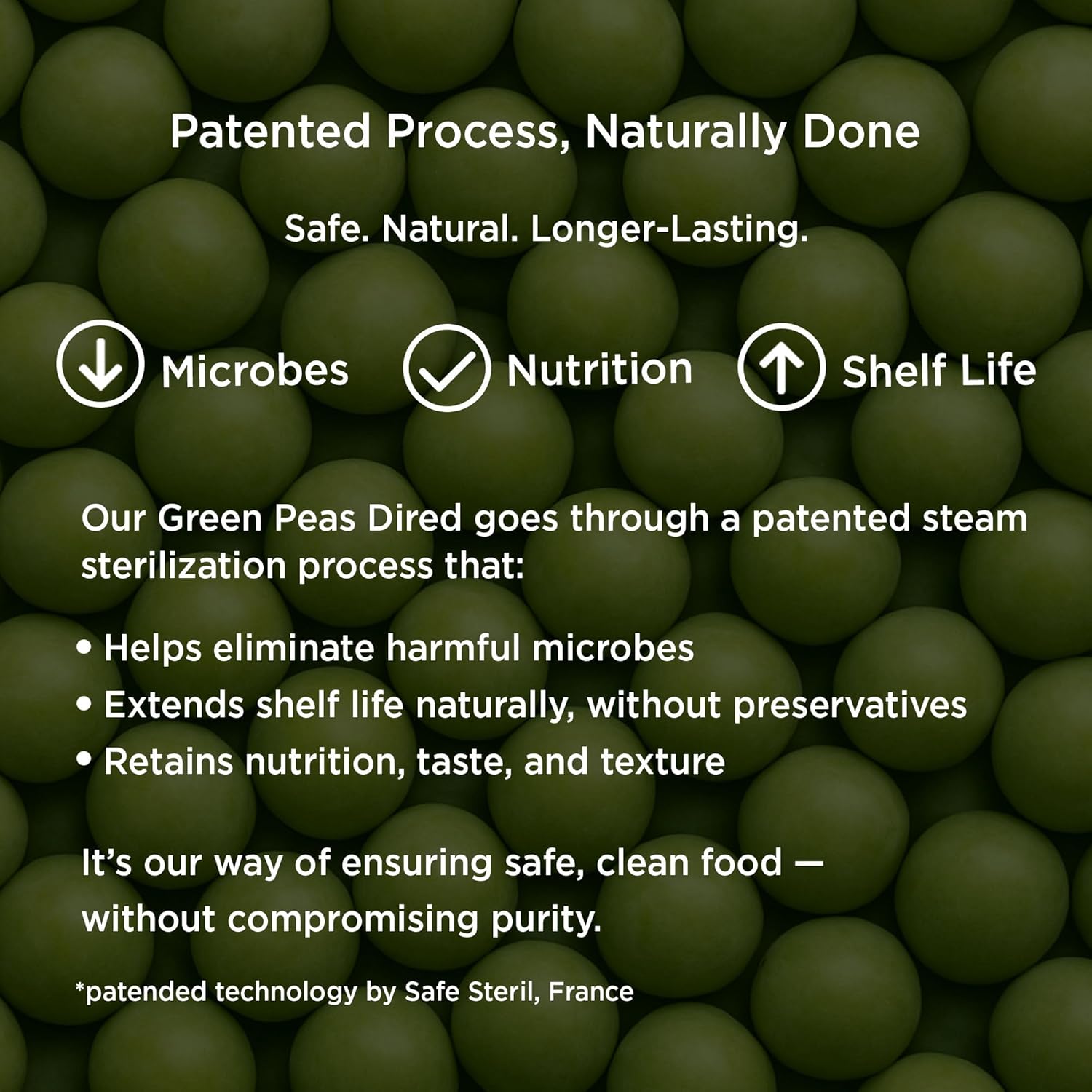 Rich in Plant-Based Protein, Fiber & Antioxidants: Dried green peas are packed with protein, dietary fiber, and essential micronutrients like folate, iron, and Vitamin B1. They help boost energy, support digestion — making them an excellent daily protein option for vegetarians and clean eaters.