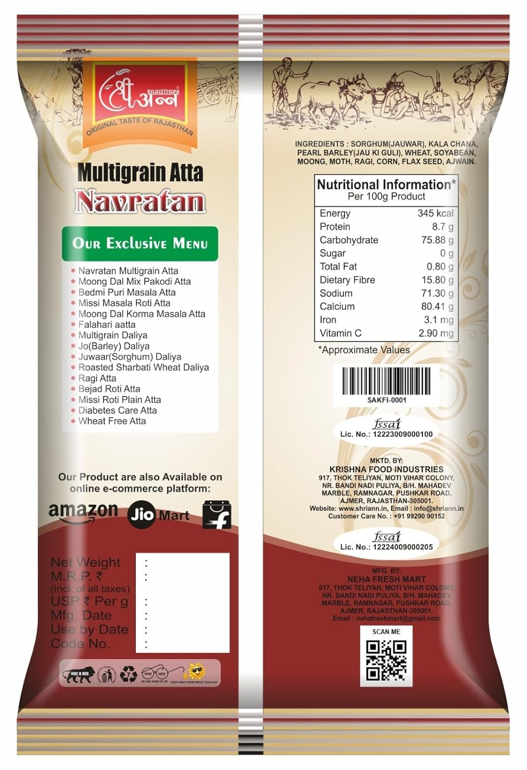 Ingredients : Sorghum(Jauwar) Kala Chana Jau Ki Guli Wheat Soyabean Moong Moth Ragi & Corn
