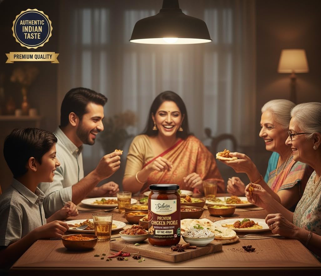 Discover the bold and irresistible flavour of Sabora Kitchen Premium Chicken Pickle, crafted with passion and traditional Indian cooking expertise. Each jar is made in small batches using tender chicken pieces, freshly ground spices, aromatic red chillies, ginger, and garlic — slow-cooked to unlock deep, authentic flavours. This pickle brings a perfect balance of heat, spice, and tang, giving you the comforting taste of homemade achar in every spoon. It pairs effortlessly with rice, chapatis, dosas, parathas, and snacks, making it a delicious addition to any meal. Prepared with no artificial colours or flavours, Sabora Kitchen offers honest, real, and pure taste that stays true to Indian culinary heritage. Whether you’re at home, at the hostel, travelling, or gifting someone, this pickle adds joy and flavour wherever it goes. Savour the richness, enjoy the spice, and celebrate tradition🌶️✨