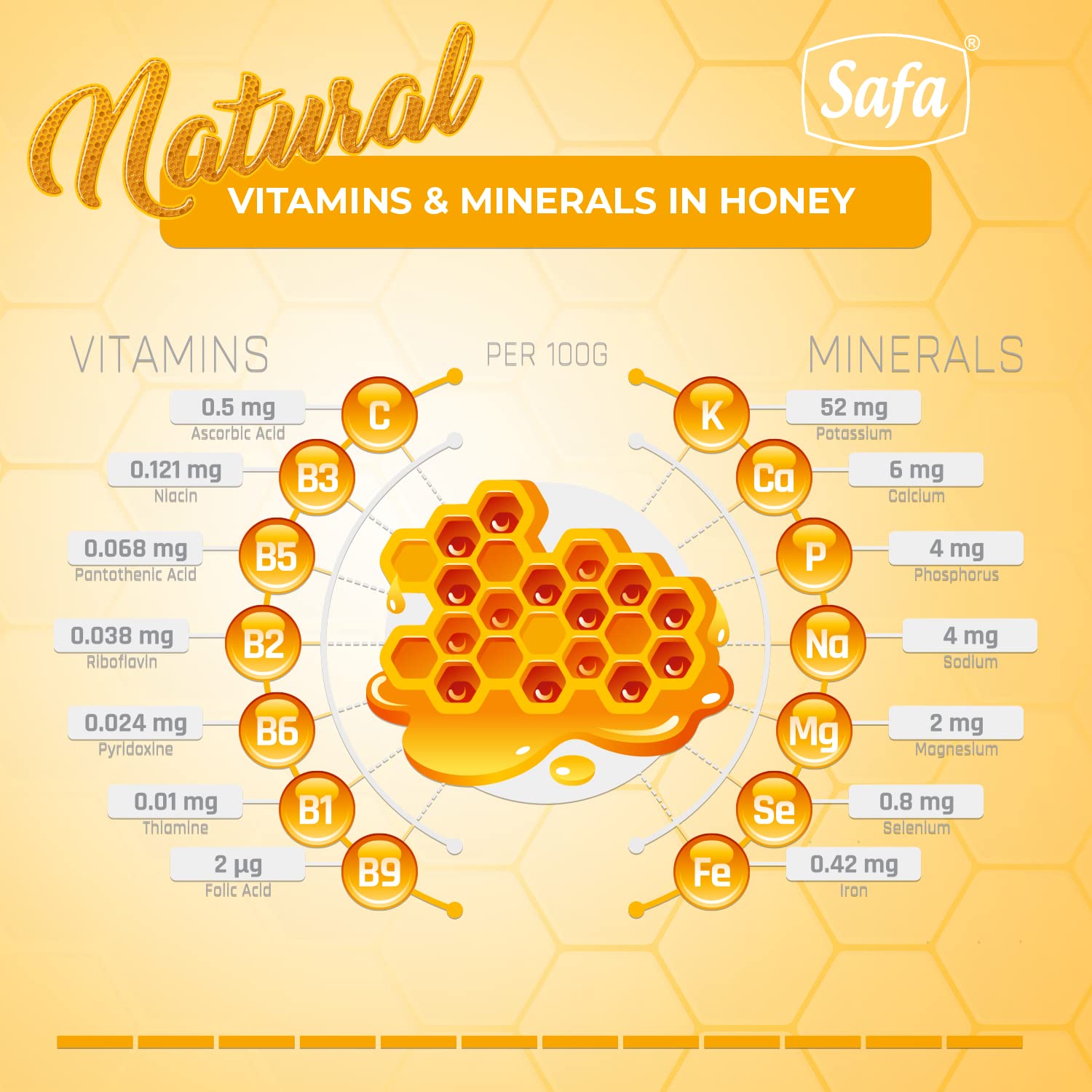 100% PURE AND NATURAL: Safa Ginger Honey is a 100% pure and natural blend of organic ginger in raw, organic honey with no artificial colors, flavors, or additives. It is also unfiltered, unheated and unpasteurized. Safa raw honey range showcases a variety of native floral honeys sourced from our own apiaries. Safa Golden Honey has a delectable, sweet taste with the rich, earthy undertones of turmeric. No wonder it comes from the most quality-minded honey harvesters in the country.