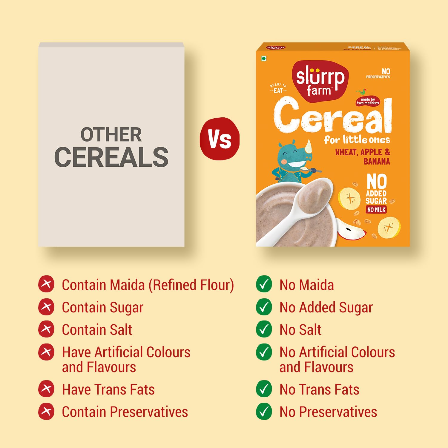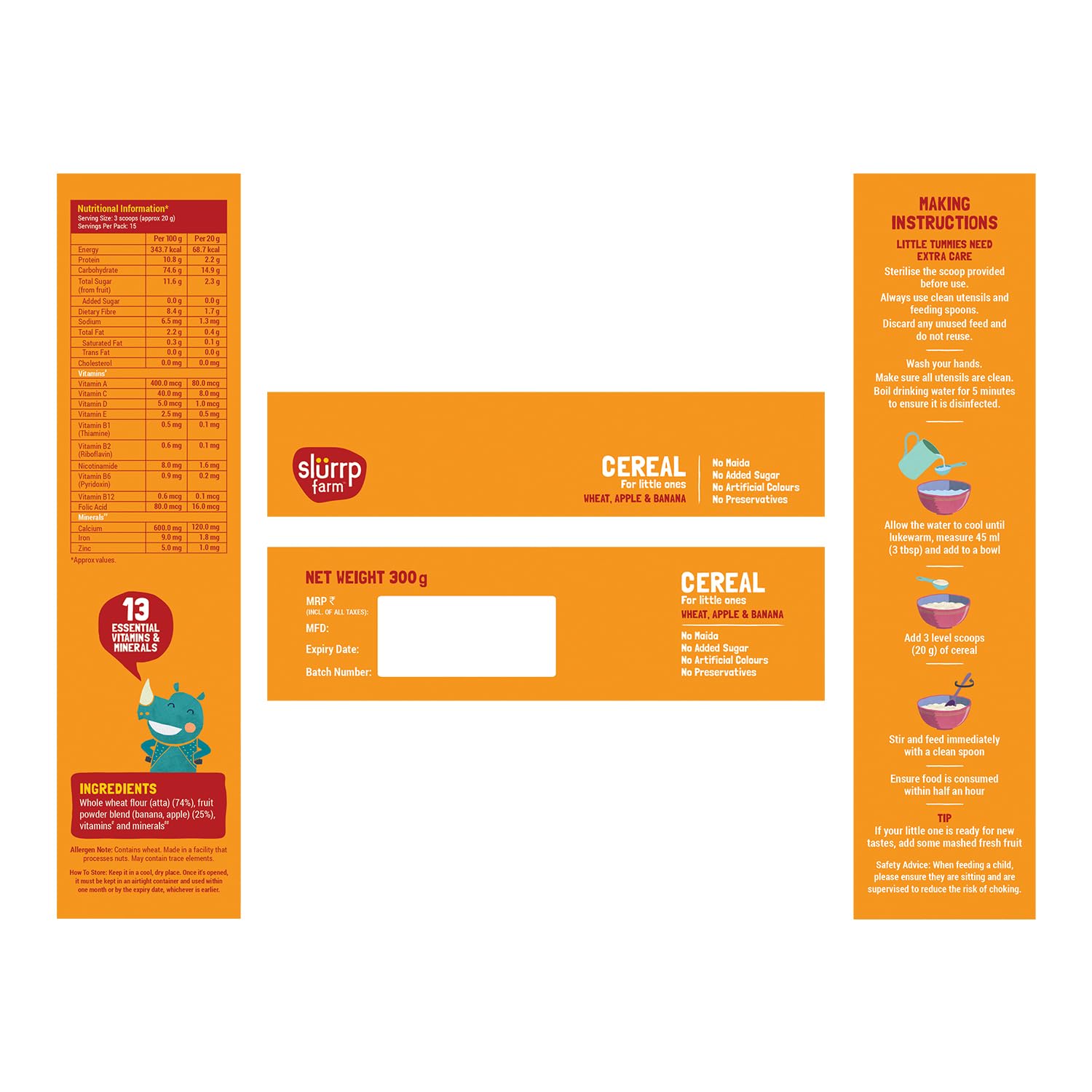 Slurrp Farm No Added Sugar Instant Wheat Apple & Banana Cereal | No Milk No Preservatives | 300g