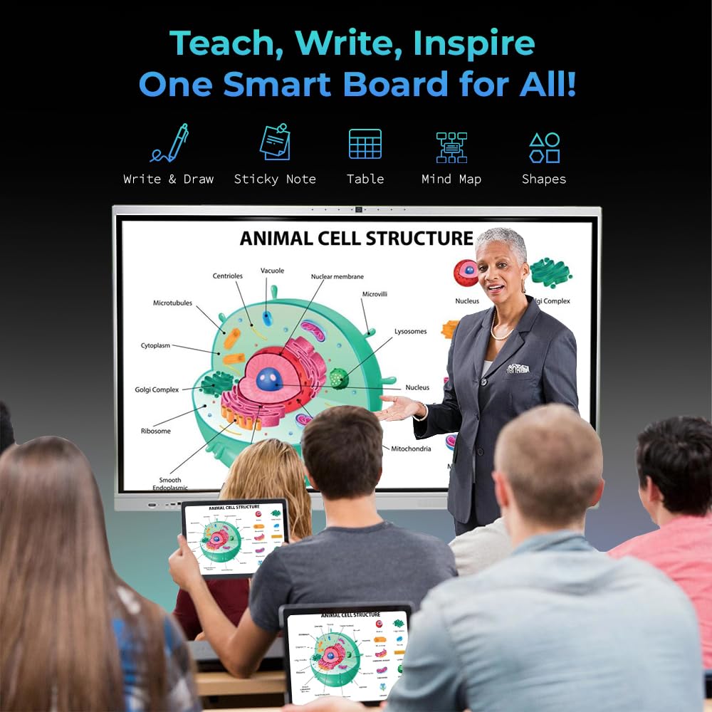 Smart Pixel 75 Inch All in One Interactive Smart Board 3840X2160 Pixel 48 MP Inbuilt HD Cam 8Array Mic 4K Display and Dual Operating System Latest Android and Windows Version for Office, School