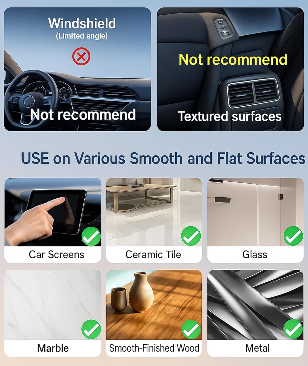 Sturdy Suction Cup: The advanced suction cup ensures a firm hold on your dashboard or windshield; No residue left behind, providing a clean and reliable attachment