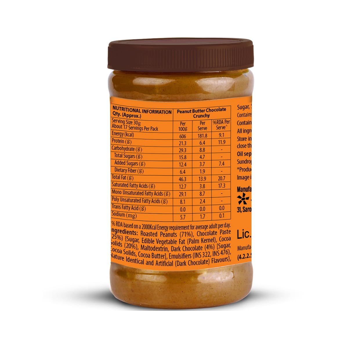 Sundrop Peanut Butter with Chocolate | Crunchy | 500 grams | With 21% Protein | 6.4% Dietary Fibre | Premium Roasted Peanuts | Great Value Per Gram of Protein I Low in Sodium