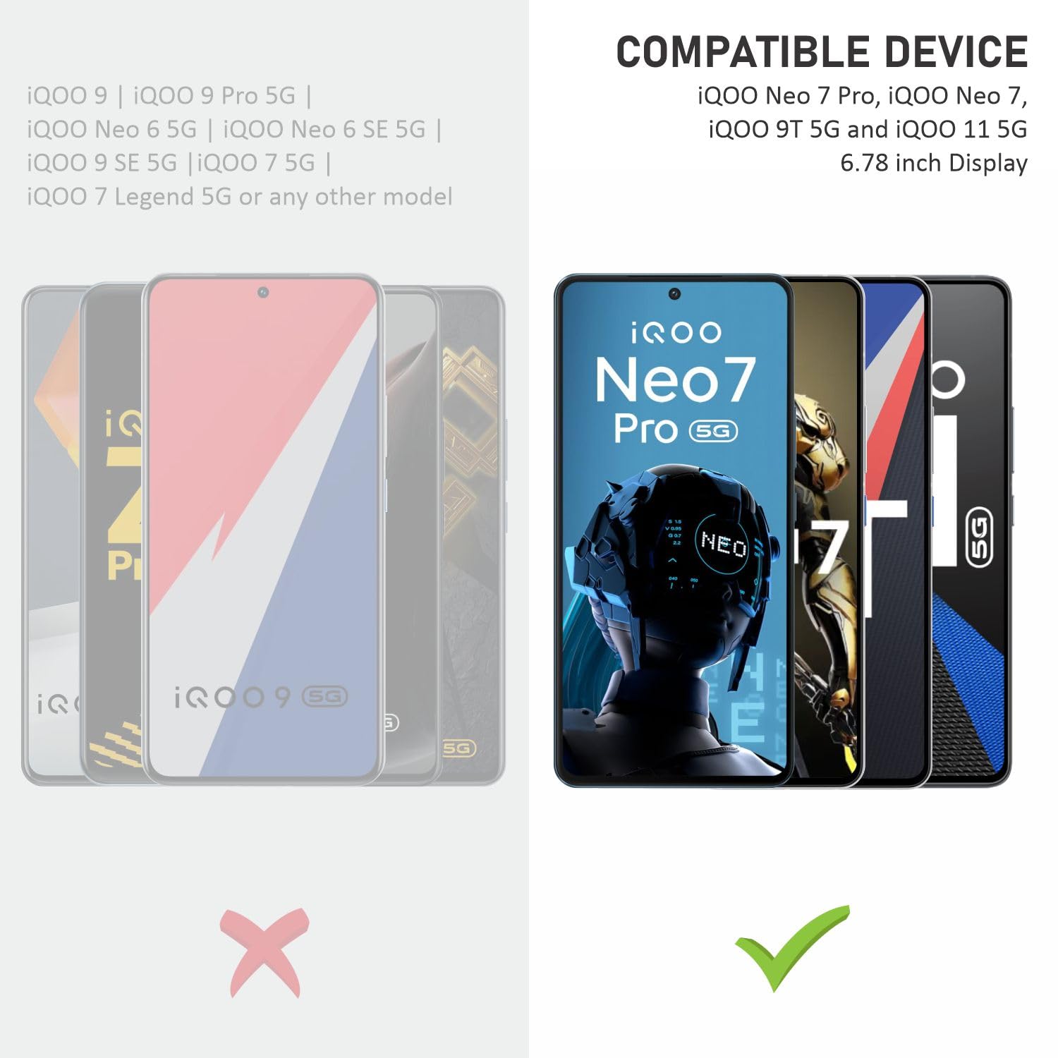 No, this is perfectly compatible with iQOO Neo 7 Pro 5G, iQOO Neo 7 5G, iQOO 9T 5G, and iQOO 11 5G – 6.78 Inch only.