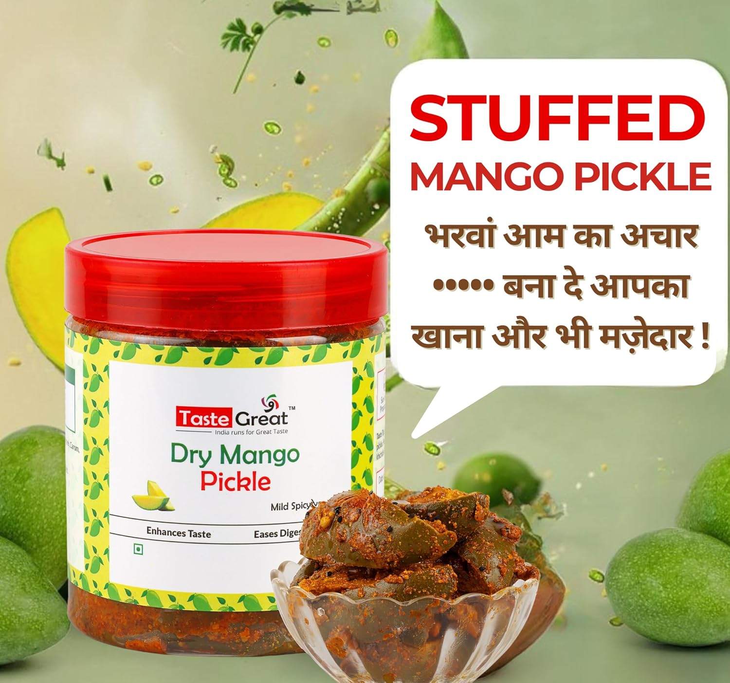 Taste Great Stuffed Bihari Mango Pickle (450g) I Homemade Bharwa Sukha Aam ka Achar I Long Cut Mango pieces stuffed with roasted masala I Bihar UP style recipe I Special sealed jar for no spill