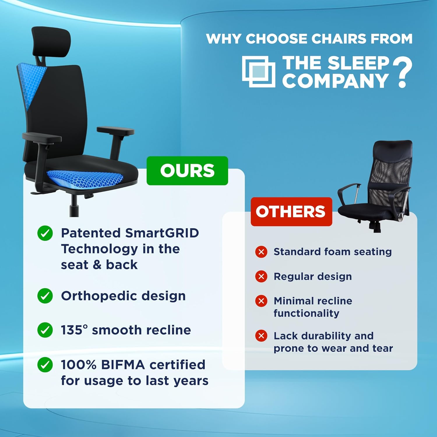 Orthopedic Back Support: The backrest of the office chair is designed with a contoured shape with built-in SmartGRID technology to support the spine in its natural and healthy S shape. The Adjustable Lumbar support provides the necessary back support for extended periods of work, making it an ideal ergonomic chair for both home and office use.