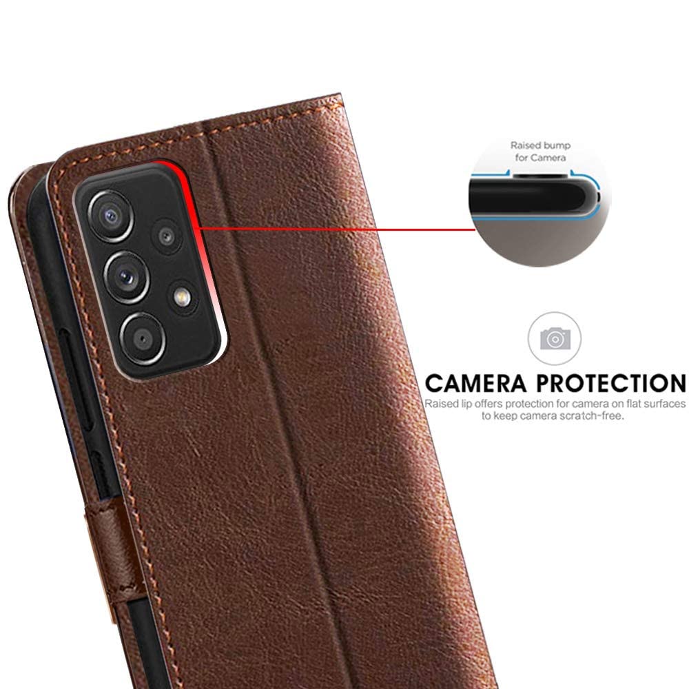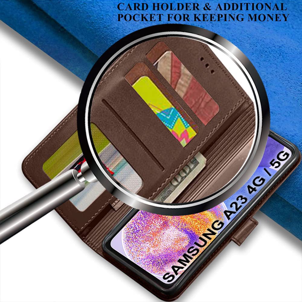 TheGiftKart Faux Leather Flip Back Cover Case For Samsung Galaxy A23 4G / A23 5G|Inbuilt Stand & Pockets|Wallet Style Flip Back Case Cover For Samsung Galaxy A23 4G / A23 5G (Brown & Coffee)
