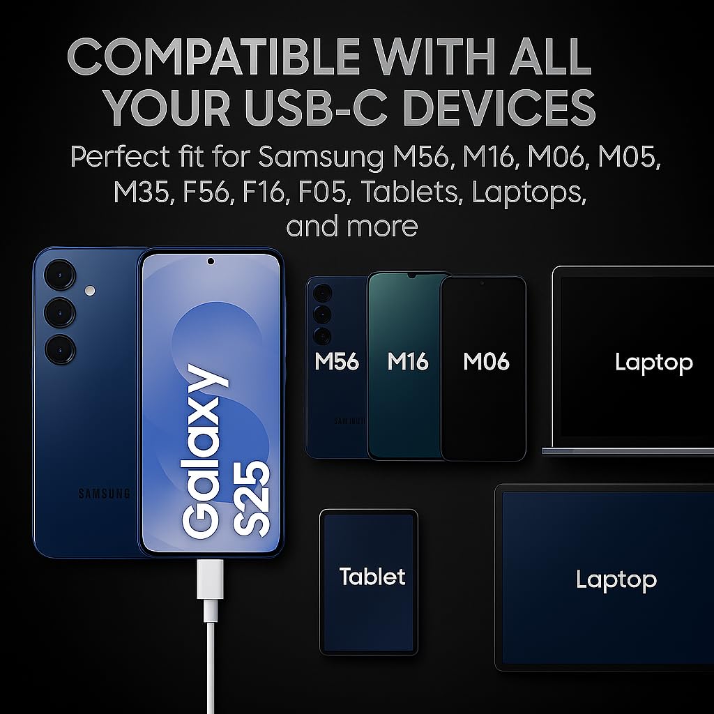 Wide Device Compatibility: The Samsung 25W cable is compatible with a range of Samsung devices as well as other USB Type-C devices, making it a versatile choice for all your charging needs.