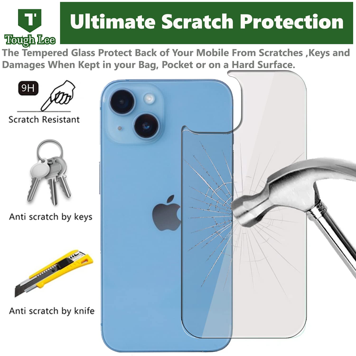 Tough Lee Back Tempered Glass Guard Protector for Apple iPhone 14/15 (6.1 inch) with Easy Installation kit; Pack of 1