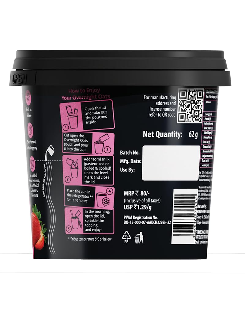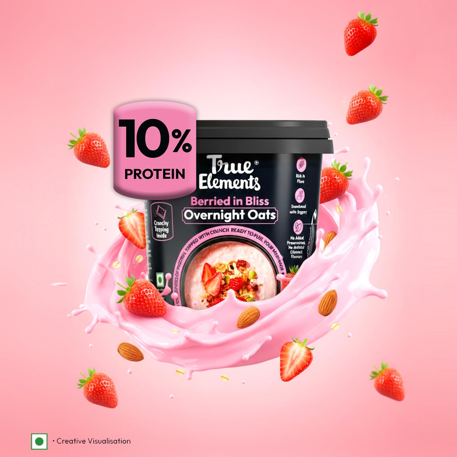 True Elements Overnight Oats Berried in Bliss 62g – Ready-to-Eat Breakfast | High Protein, Fibre & Berry Flavour | Healthy Instant Oats Snack