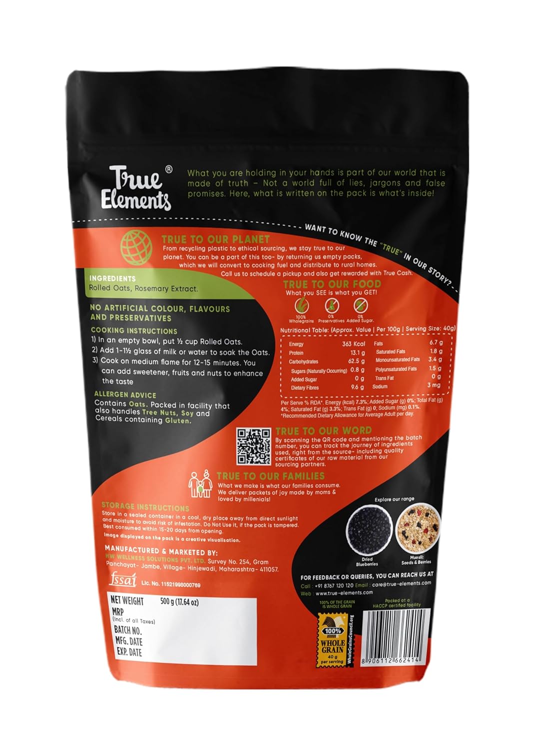 True Elements Rolled Oats 500g – Rolled Oats for Weight Management | Nutritious Breakfast | Rich in Protein | Gluten free Oats Combo | High Fibre Breakfast | 100% Wholegrain