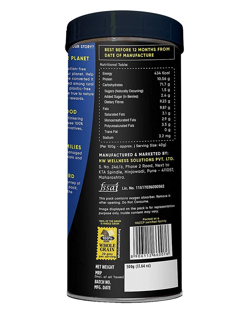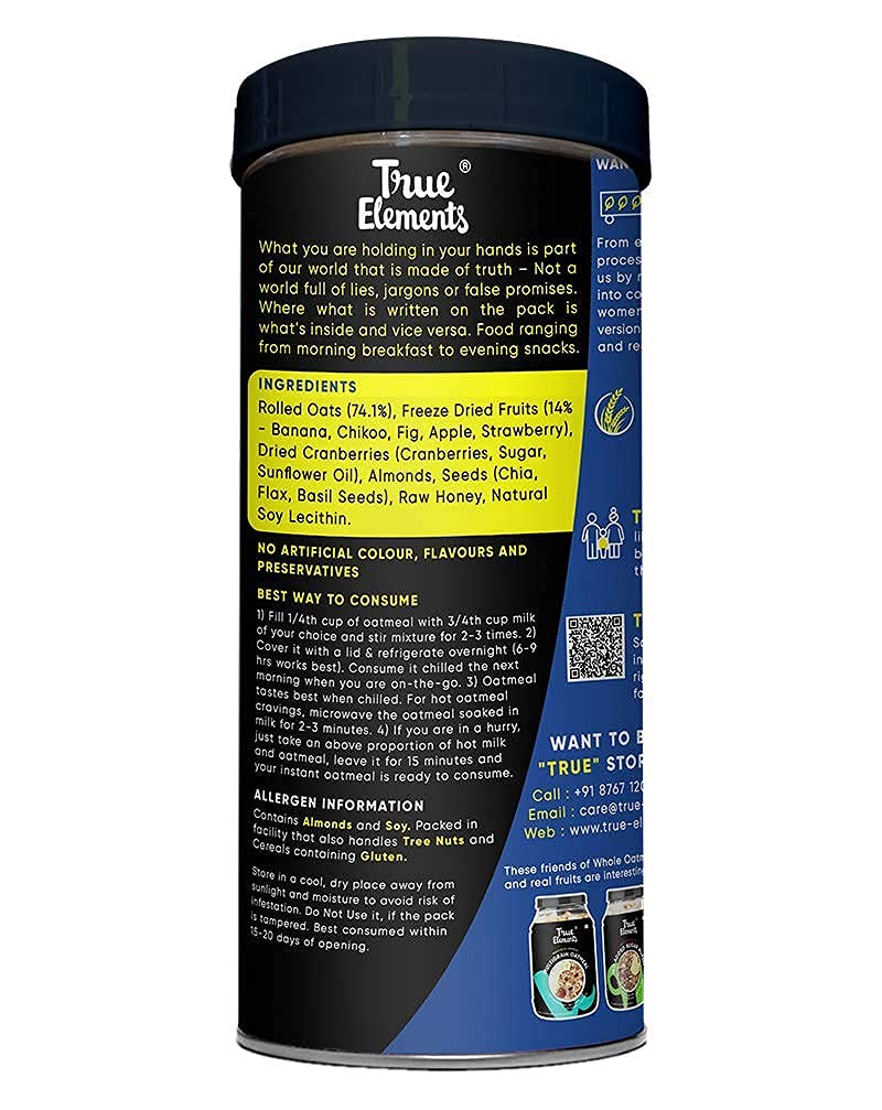 True Elements Whole Oatmeal 500 Gram High Fiber Breakfast with Real Fruits & Seeds