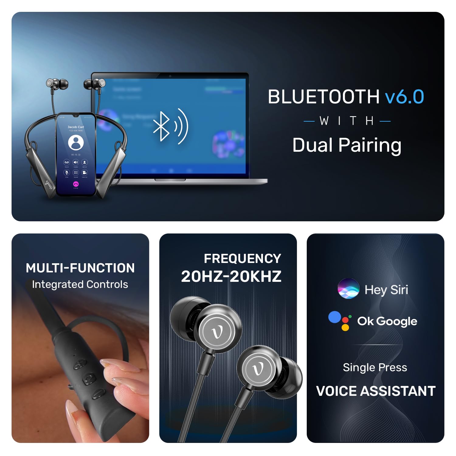 ✅ Bluetooth 6.0 Connectivity – Enjoy faster pairing, stable connections, and up to 10 metres wireless range with the Voods Neckband.
