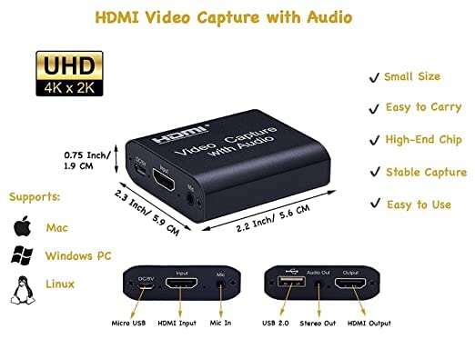 HDMI Capture Card, Easy Video Recording This video capture device can be connected to the source HDMI interface devices (such as: PS3,PS4,NS switch, XBOX, computer, laptop, DVD,HD player etc).