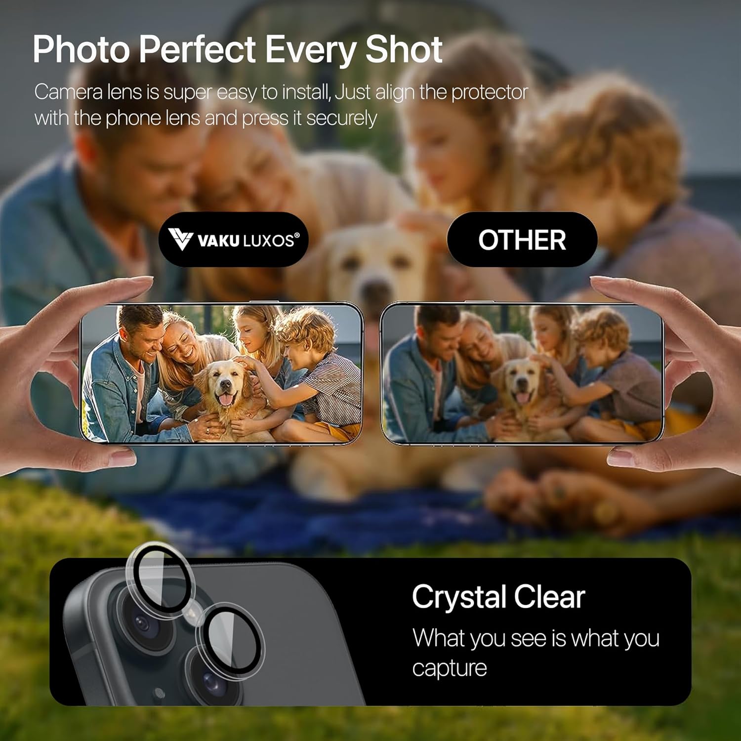 【Keep Original Camera Performance】This Camera Protector has 99.99% light transmittance, Whether it is day or night, keeping the picture original quality, gives you an ultra-clear viewing and photo taking experience.