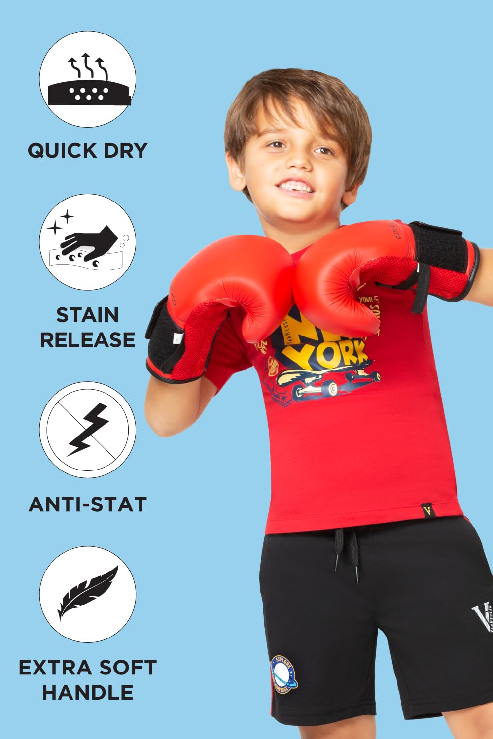 The graphic t-shirt is made of 100% cotton. This is an addition to your child’s wardrobe that brings in ultimate comfort and durability. Club this tee with relaxed joggers and slip-on shoes. Label free comfort. Smart Tech+ technology draws perspiration from the skin, keeping the body cool, dry and comfortable. Coupled with anti-stat technology and soft hand-feel, this feature gives you all-day comfort. The stain removal feature makes it easy to maintain.