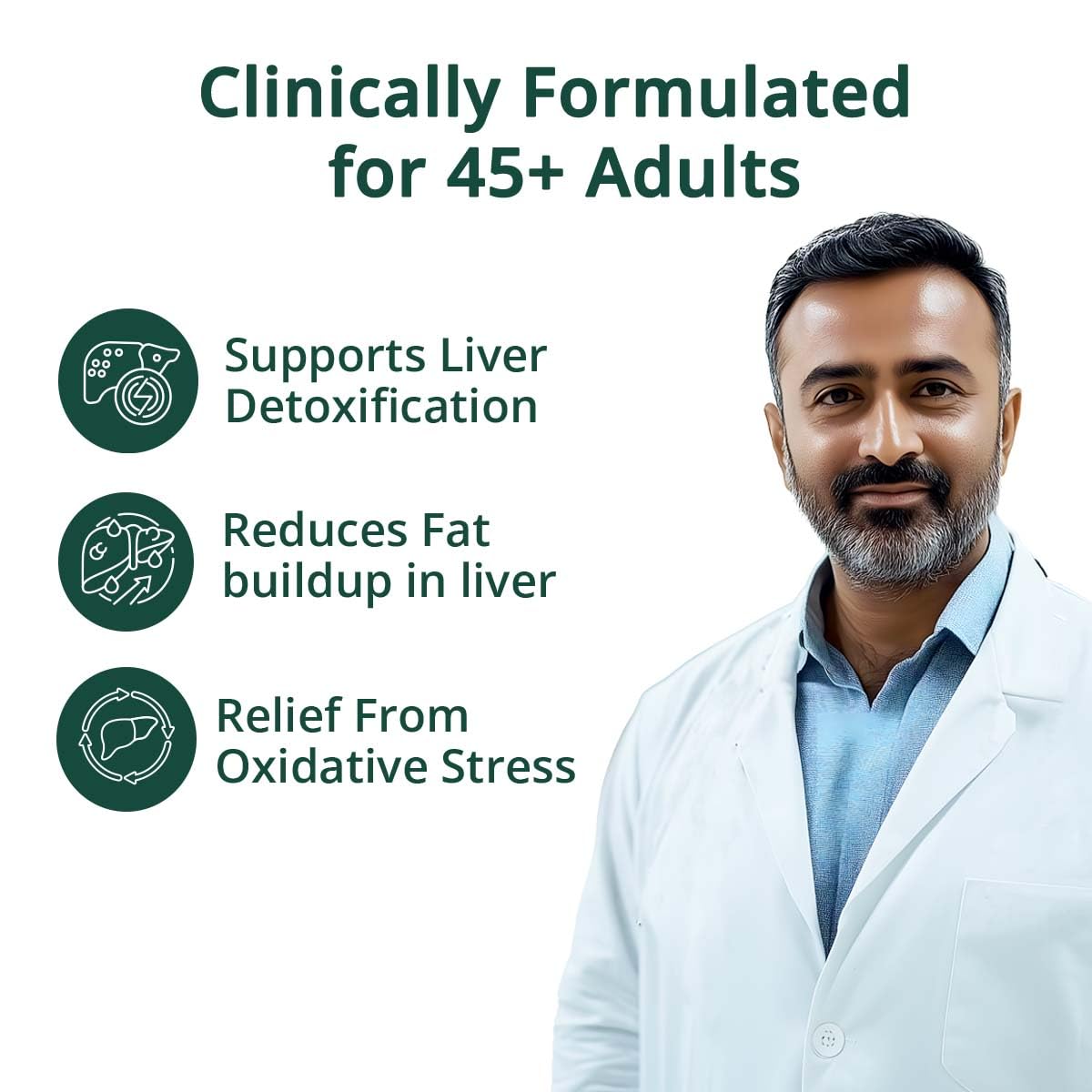 India’s First Liver Care Juice for 45+ Adults : As we age, the liver’s ability to detoxify and process fats declines, leading to toxin buildup and increased risk of liver conditions like inflammation and fibrosis.