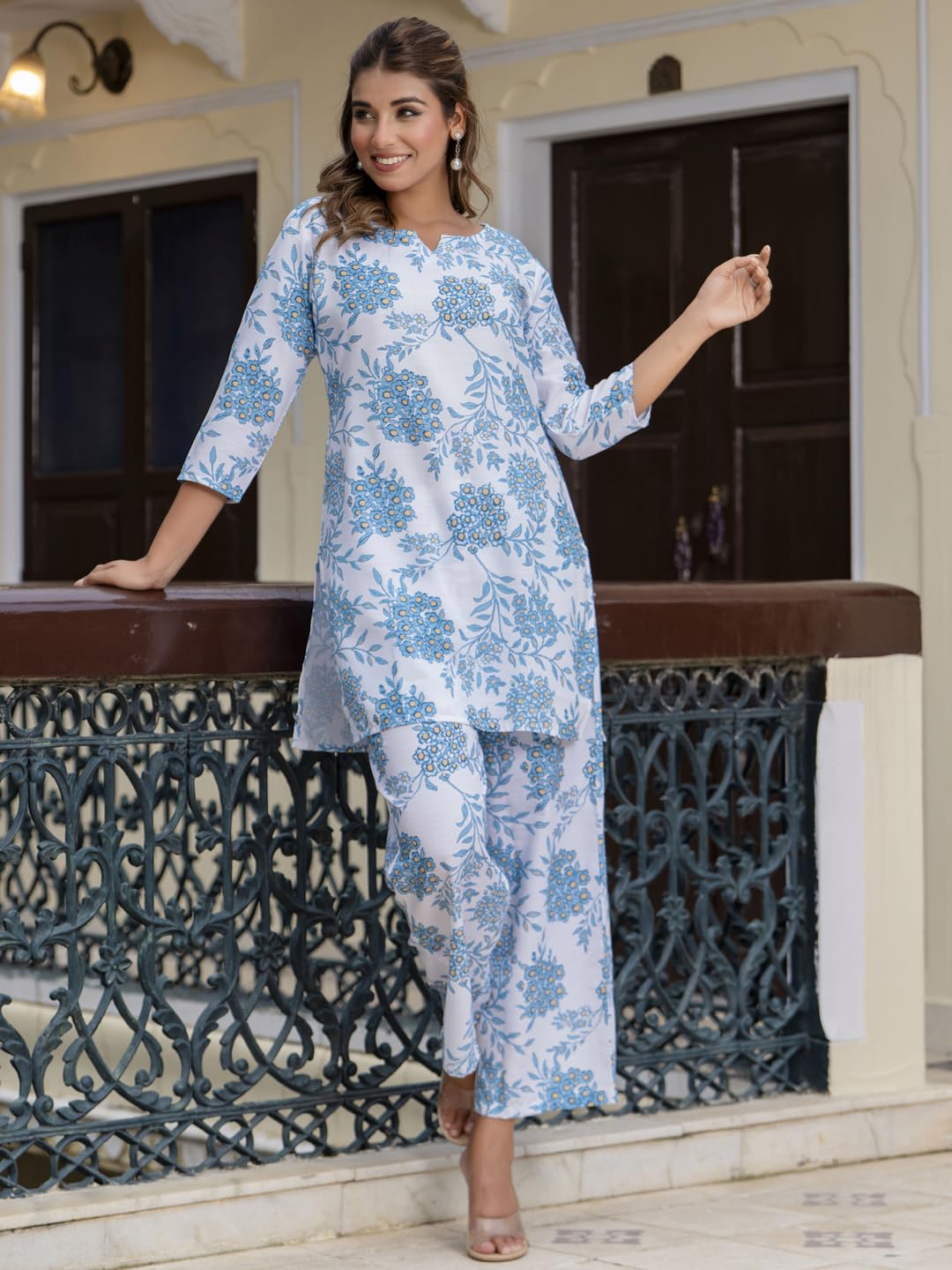 Customers find the kurta set comfortable and well-fitting, with one mentioning the length is just right. The cotton blend fabric is soft, and they appreciate the beautiful print, with one noting the intricate embroidery adds elegance. They like the quality, and one customer mentions it’s suitable for both casual and formal occasions.