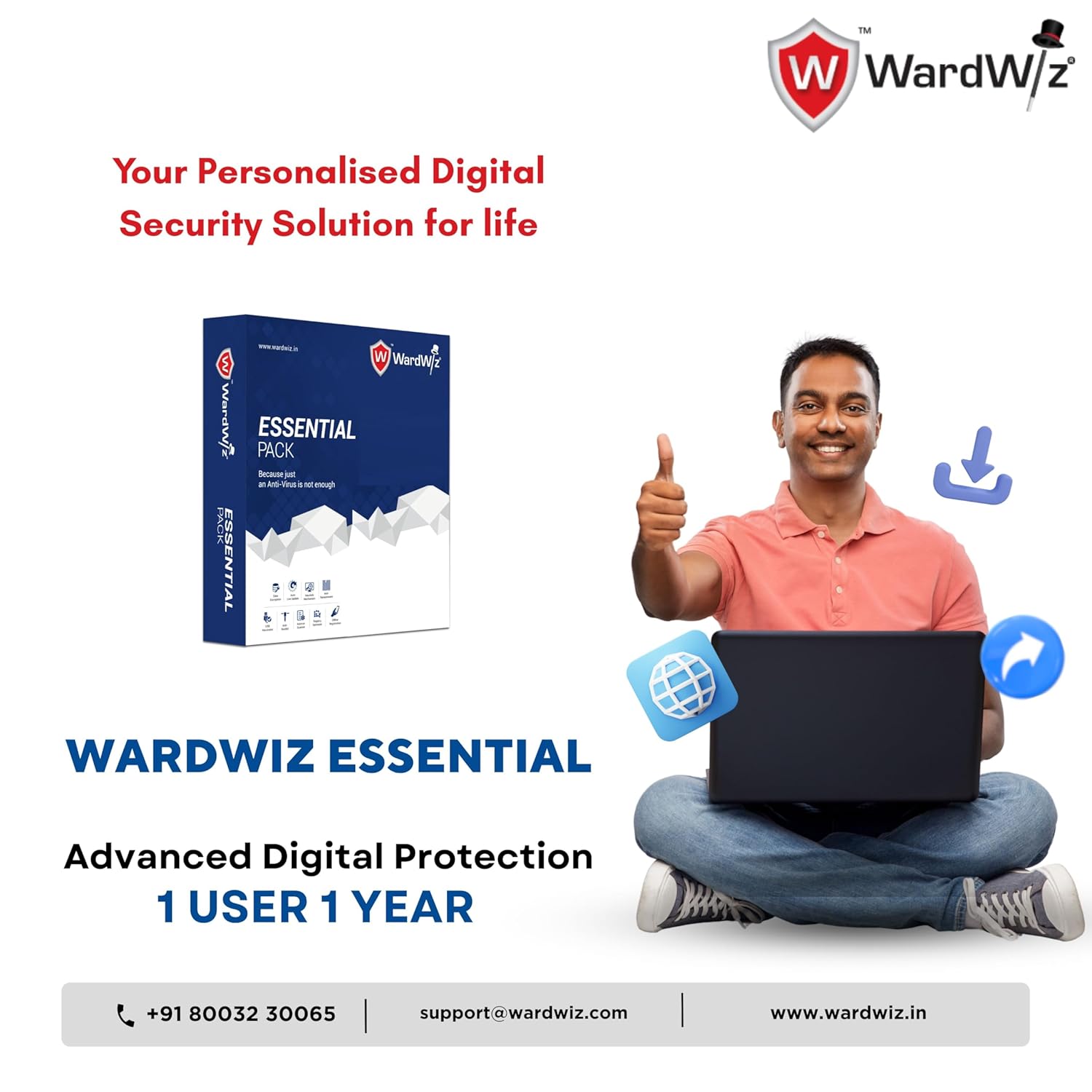 WardWiz Essential Antivirus for Windows (Email/Virtual Delivery in 1 Hour) | 1 User | 1 year | Advanced Digital Security | Anti-Rootkit, Email Scan, Data Encryption | Valid for 1 Year