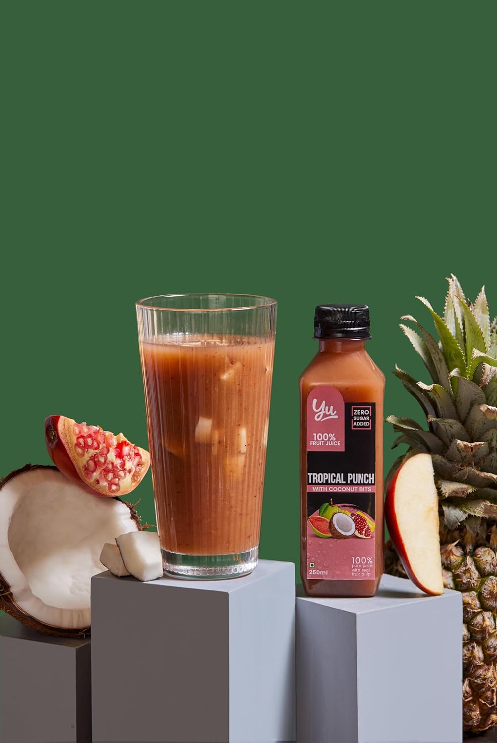 Yu Foodlabs 100% Fruit Juice-Tropical Punch-Mixed Fruit Juice With Coconut Bits-Pack Of 3-No Added Sugar Healthy Beverage-100% Natural Ingredients-Zero Preservatives-750 Ml(3 X 250Ml)-Yu